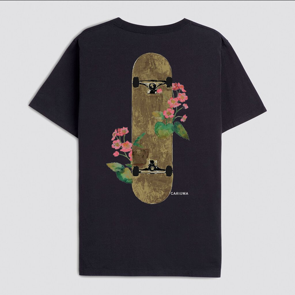 Cariuma T-Shirt Black Floral Skateboard