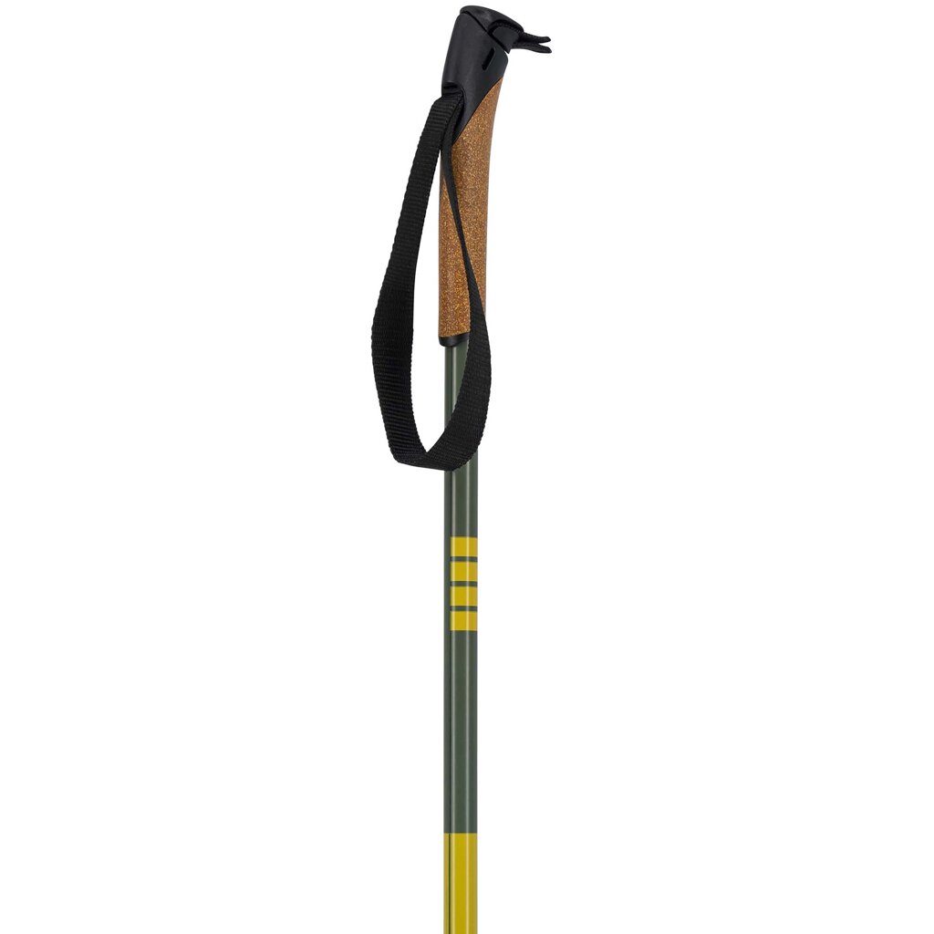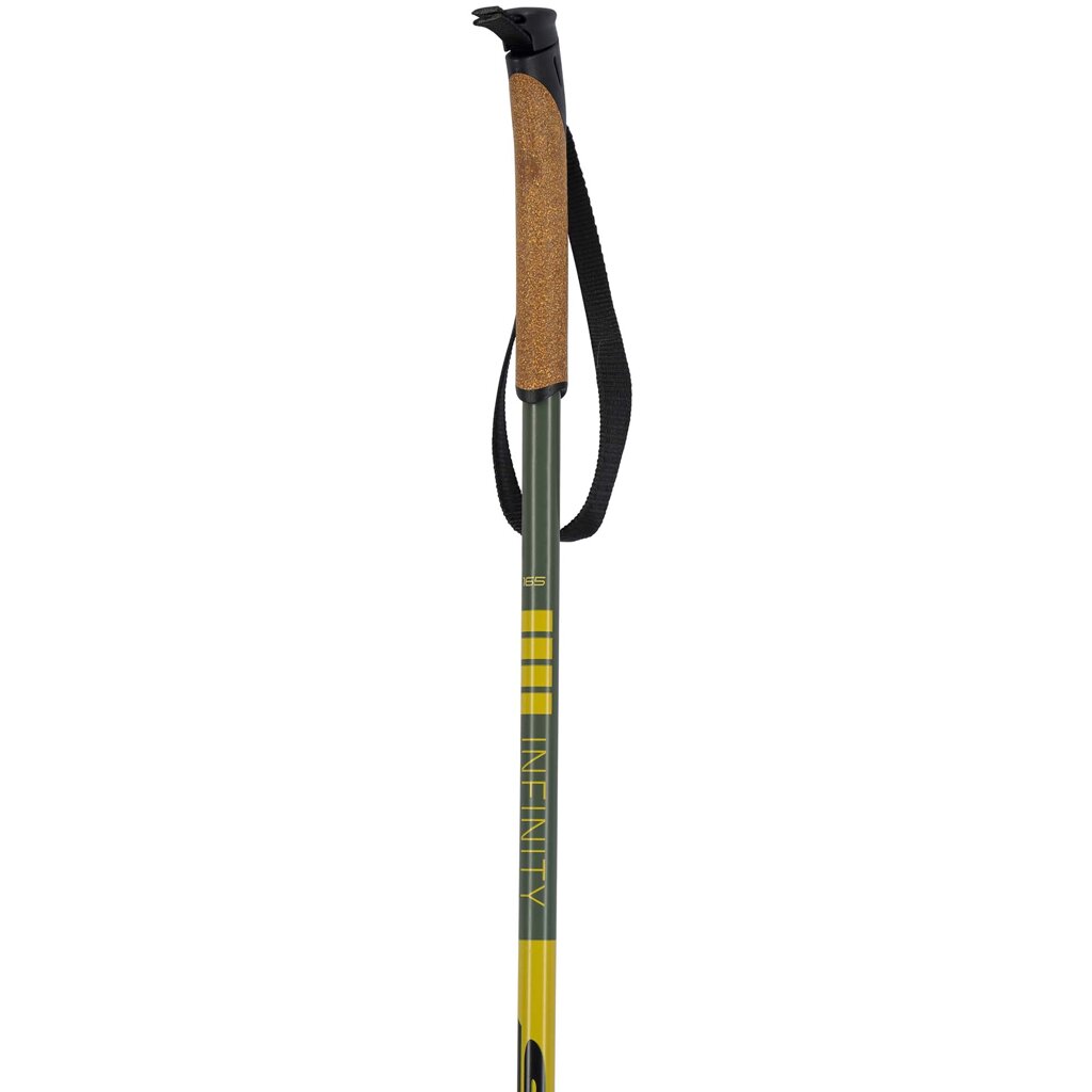 The Infinity Tradition Alu pole has a cork filled urethane handle with shaped strap and large basket, ideal for loose conditions, although the asymmetrical shape still works on groomed trails.