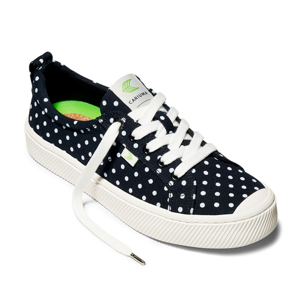 Dámské volnočasové boty Cariuma OCA Low Black Canvas White Polka Dots Sneaker