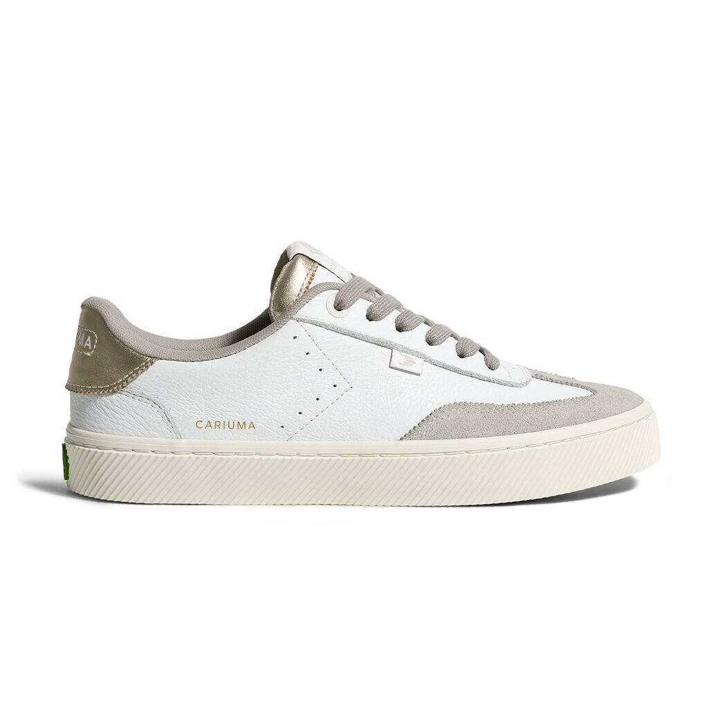 Dámské volnočasové boty Cariuma TOCA White Premium Leather Vintage White Suede Metallic Gold Sneaker