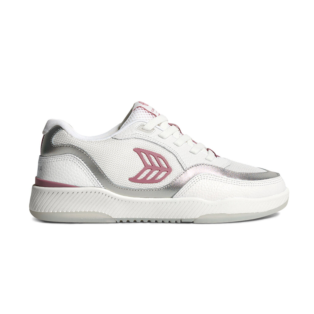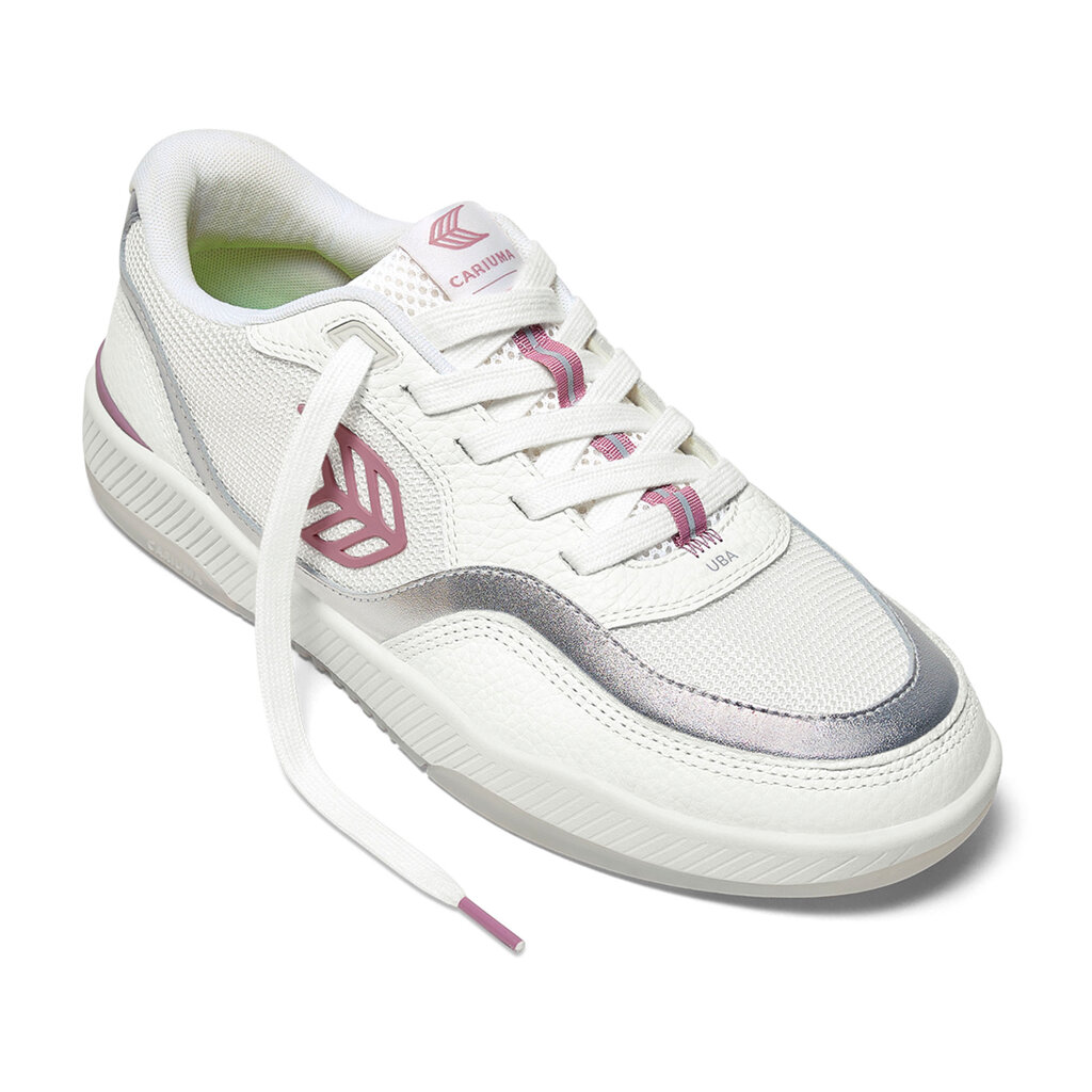 Dámské volnočasové boty Cariuma UBA White Leather and Suede Blush Pink Logo Silver Accents Sneaker