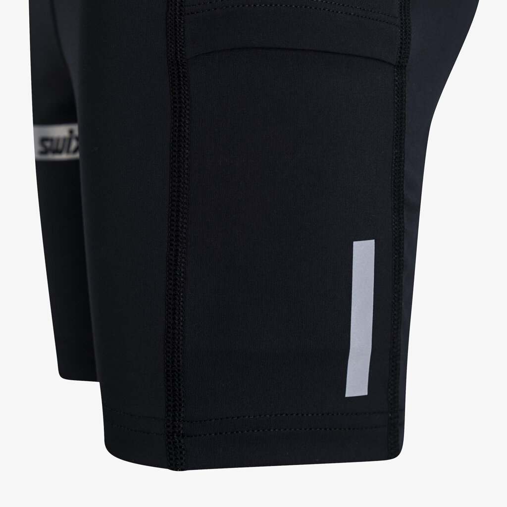 The Swix Roadline Half Tights Jr are designed for young athletes who stay active on foot or wheels. These stretchy and durable shorts provide excellent freedom of movement for both roller skiing and running. Reflective details add an extra layer of safety during low-light conditions. With a fit that stays in place and fabric that keeps up, these tights are built for performance and play.