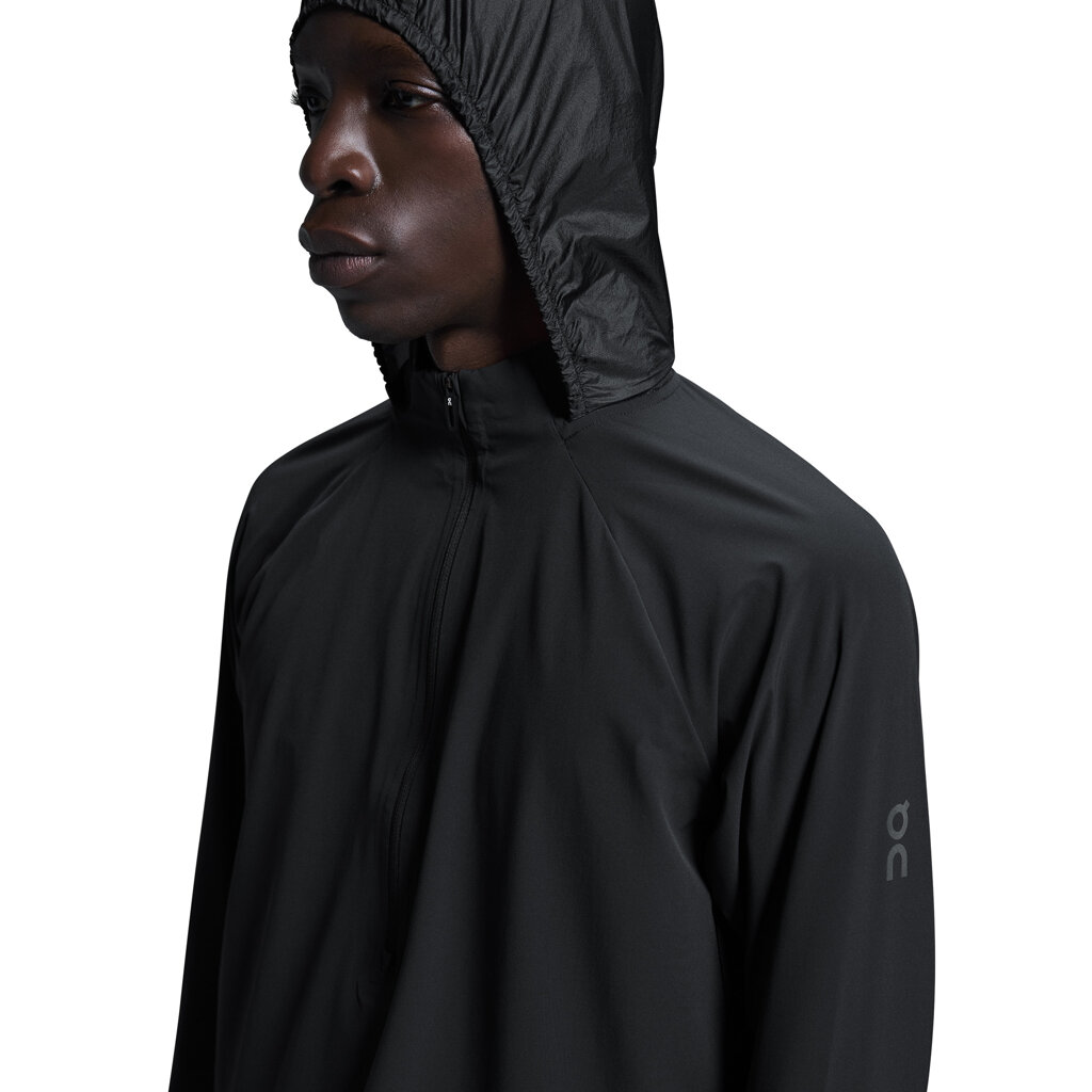 A watch window allows you to check the time without breaking your stride. Thumb holes keep your fingers free and hold your sleeves in place in cold weather. Finished with a durable water repellent (DWR) treatment, the lightweight hood packs easily into the jacket's collar when not in use. Ideal for changing weather conditions.