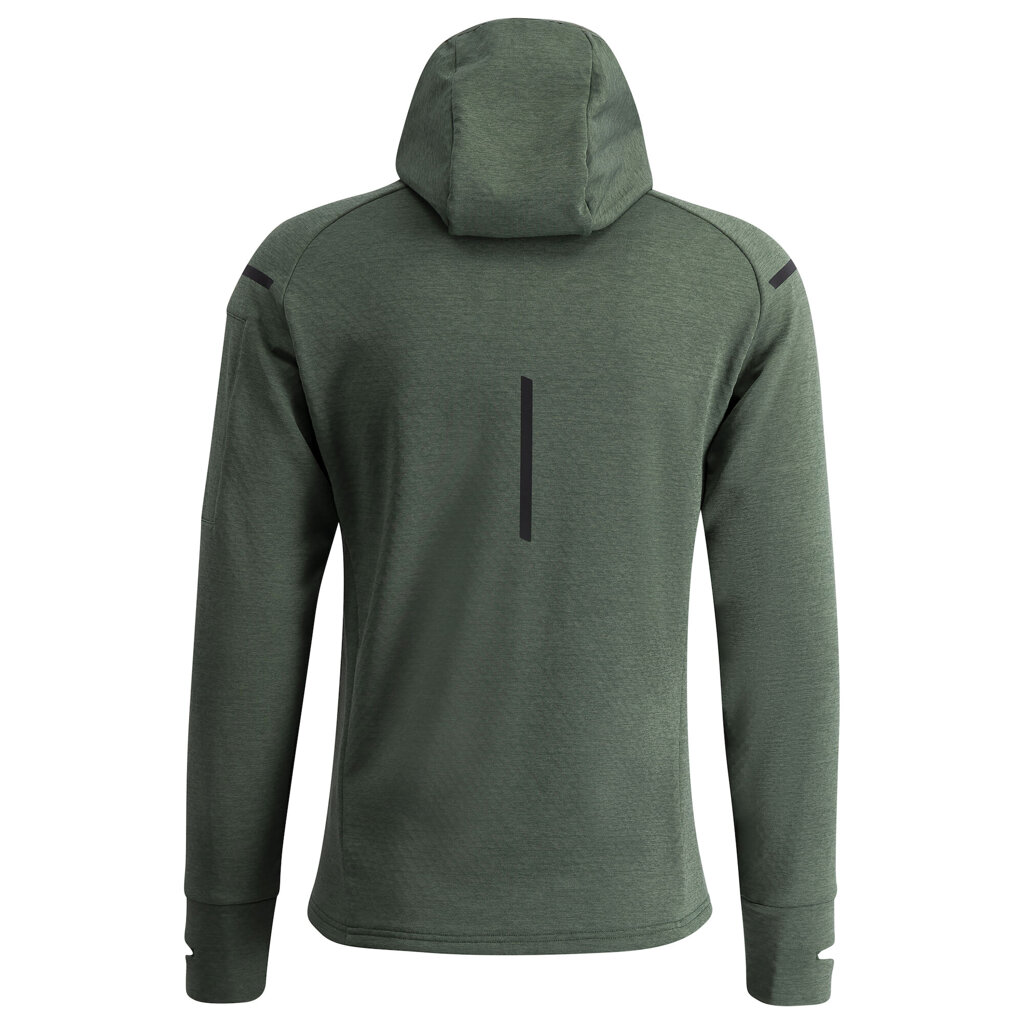 Discover the ultimate in comfort and performance with our hooded midlayer. Crafted from 4-way stretch fabric with a brushed backside, it offers exceptional softness and flexibility. The elastic-bound hood provides a snug, secure fit, while the zippered upper sleeve pocket keeps essentials close at hand. Watch-compatible cuffs allow easy access to your device, and reflective details ensure visibility in low-light conditions. Perfect for layering, this midlayer is designed for both style and functionality on all your active adventures.