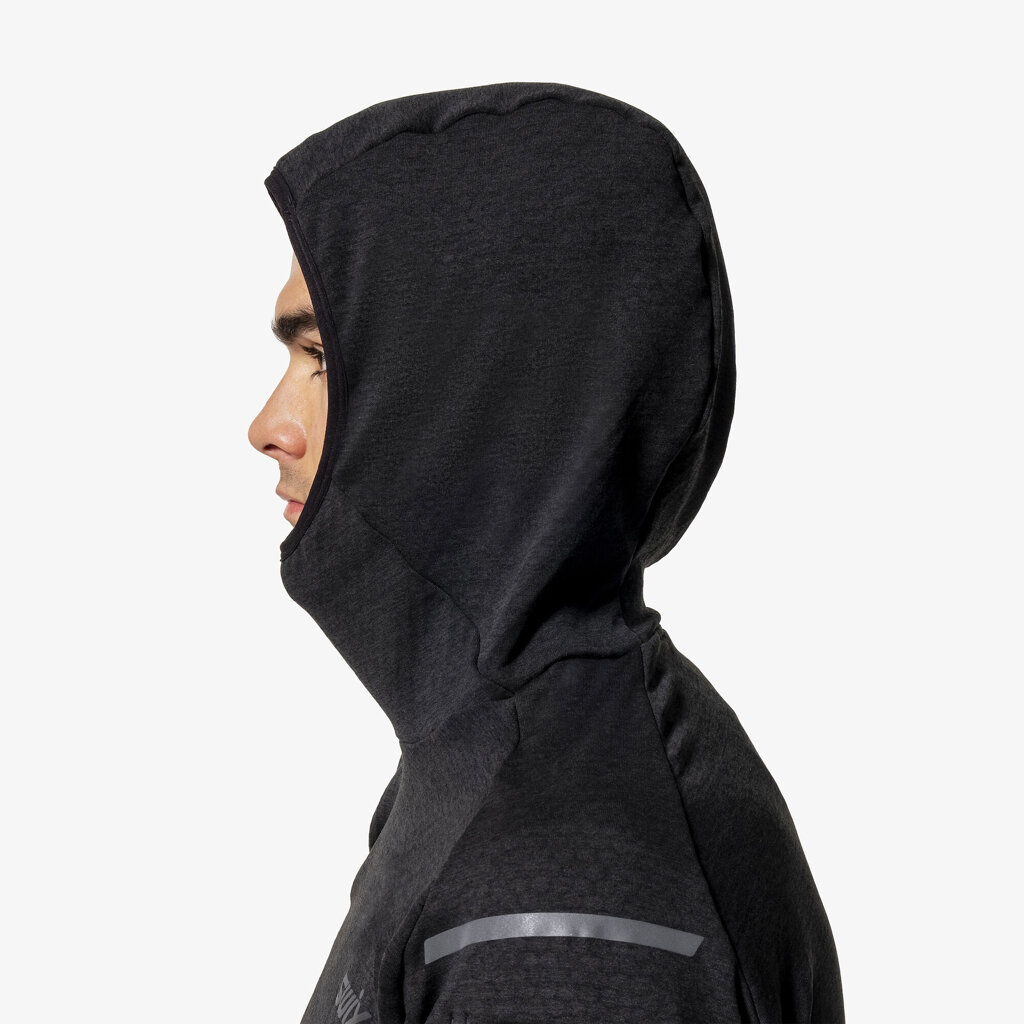 Discover the ultimate in comfort and performance with our hooded midlayer. Crafted from 4-way stretch fabric with a brushed backside, it offers exceptional softness and flexibility. The elastic-bound hood provides a snug, secure fit, while the zippered upper sleeve pocket keeps essentials close at hand. Watch-compatible cuffs allow easy access to your device, and reflective details ensure visibility in low-light conditions. Perfect for layering, this midlayer is designed for both style and functionality on all your active adventures.