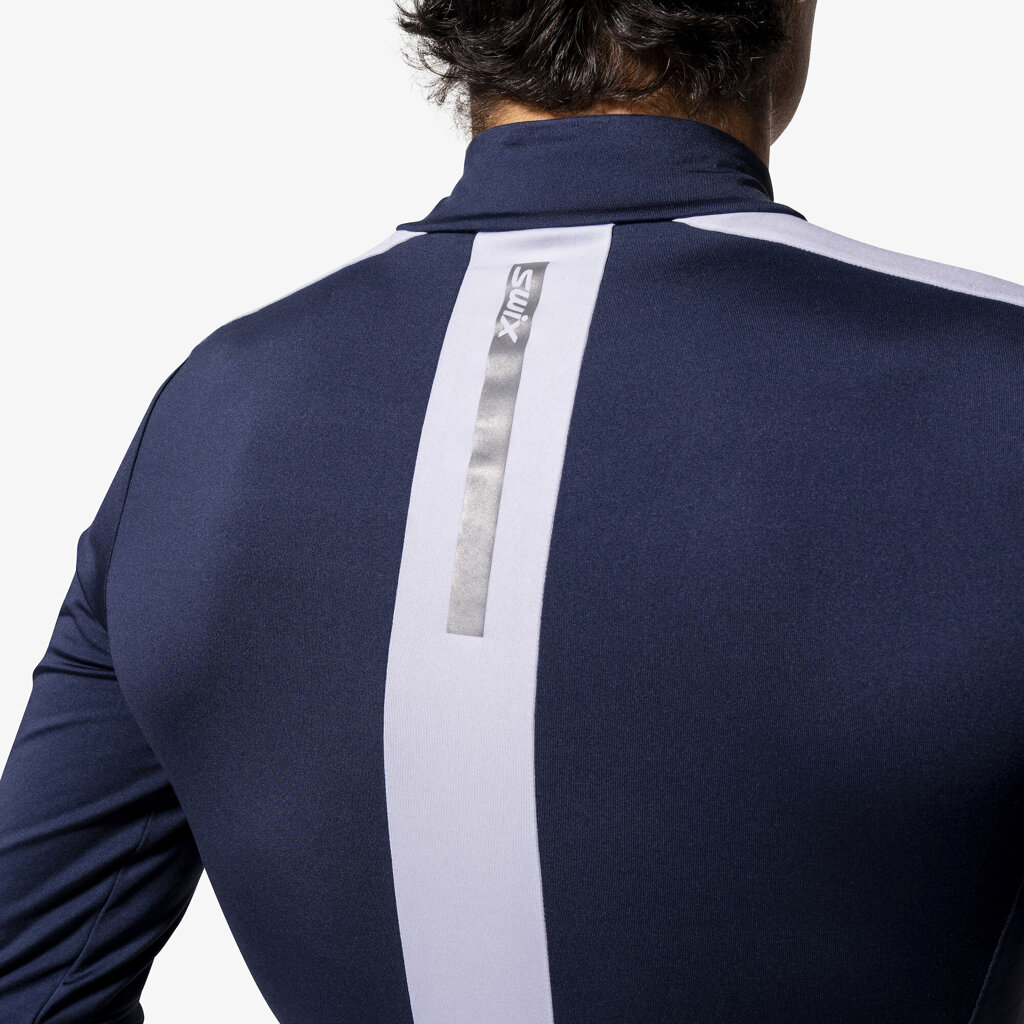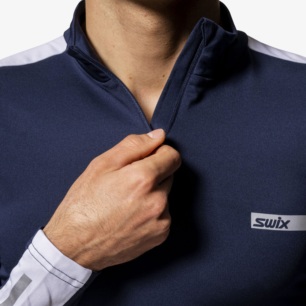 Swix Roadline NTS Half Zip Baselayer Top is a performance baselayer designed for roller skiing and running in colder conditions. “NTS” stands for “Next To Skin,” and this top is intended to be worn directly against the skin—either on its own or under a jacket. It offers excellent moisture-wicking properties to keep you dry and comfortable, and features a half-zip for adjustable ventilation along with reflective details for added safety.