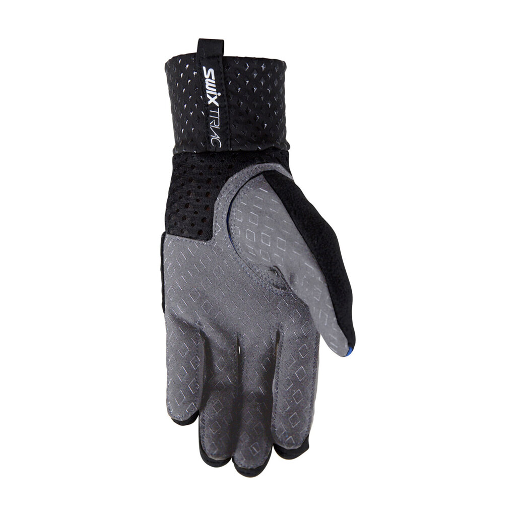 Triac Light Glove is a thin and lightweight cross-country skiing glove specially designed for the Swix Triac ski pole. The upper part of the glove is shaped to fit perfectly with our racing straps, made of breathable Schoeller® air mesh that cushions pressure from the strap. The cuff has a silicone print so the Triac Jacket cuff adheres to the glove. Narrow design with a snug, elastic cuff and thumb wedge with stretch thumb technology for optimized mobility. Durable synthetic leather palm with silicone provides extra grip. Ideal for hard training, ski races on mild winter days, roller skiing, or training sessions in fall and spring.