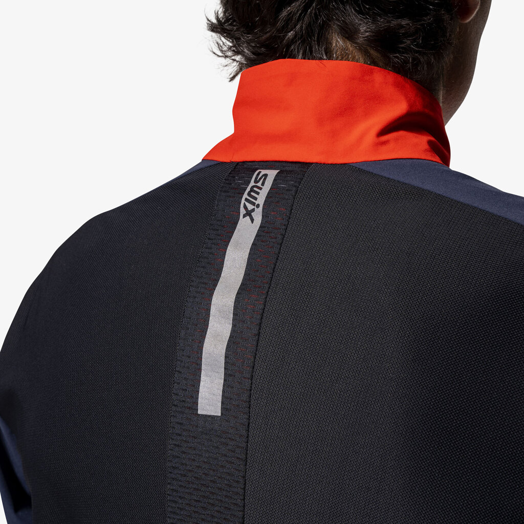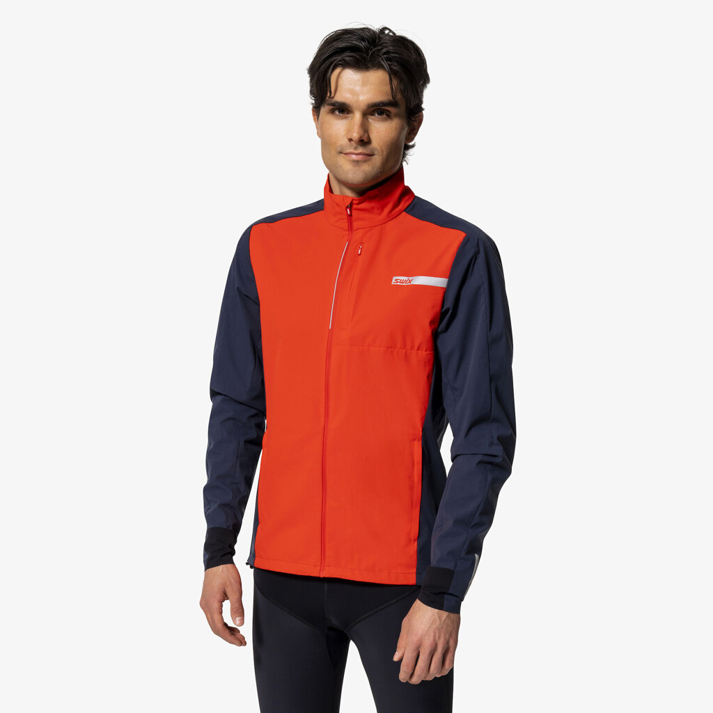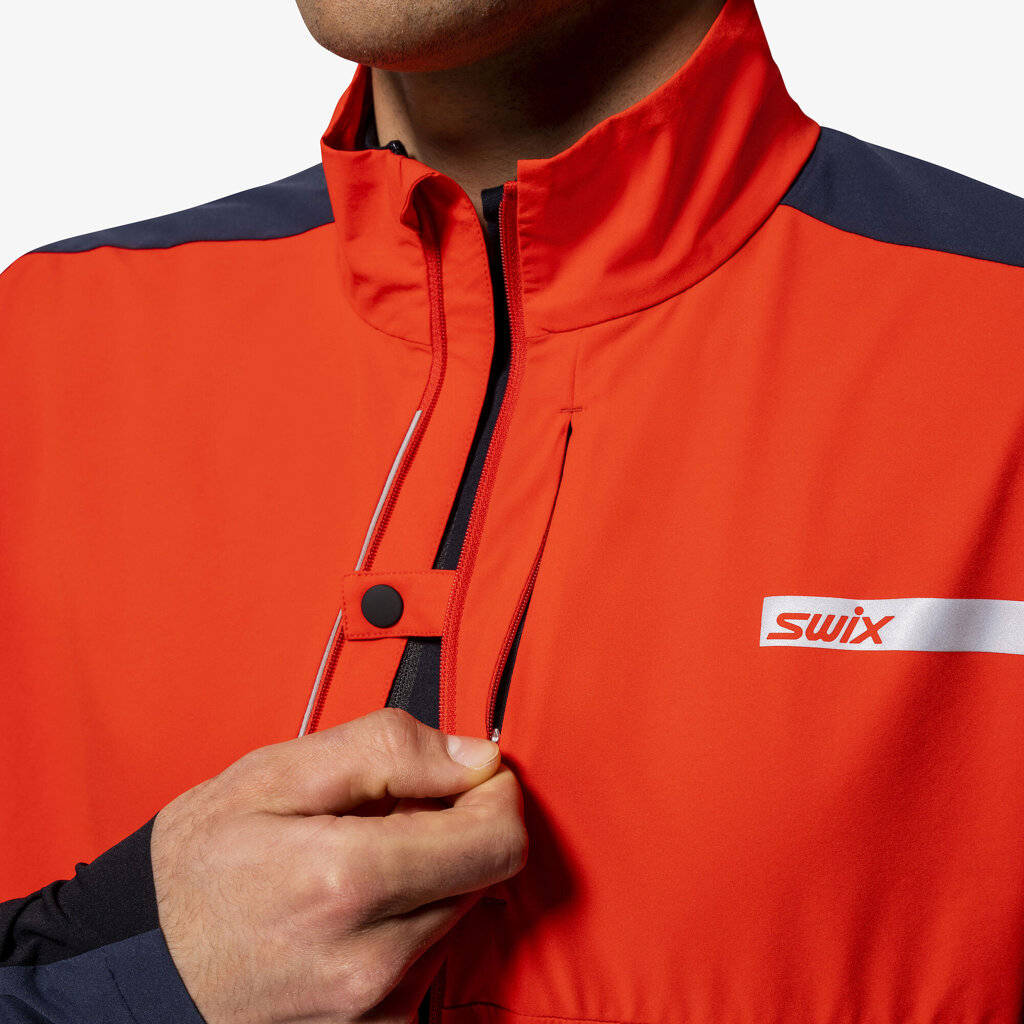 Swix Roadline Wind Jacket W is a technical training jacket for women, designed for roller skiing and running. It features wind-resistant front panels combined with stretchy and breathable materials to ensure comfort and mobility during high-intensity workouts. Bright colors and reflective details improve safety, while a zippered chest pocket holds your small essentials.