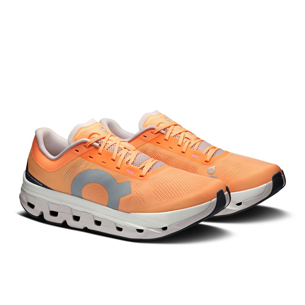 Road running shoes or track shoes. A road running shoe with CloudTec® technology built into the Helion™ HF layer, inspired by our top-of-the-line racing shoes for maximum bounce. This combination of materials absorbs shock, meaning every step feels softer underfoot. What's more, it restores the feeling of an ultra-responsive run. This is crucial to running faster and staying faster than ever. The Speedboard® is enhanced with a glass-infused nylon blend for efficient forward motion. The rocker toe of the sole further enhances this rolling forward motion. The Cloudflow 5 road shoe has an ultra-lightweight woven upper and more space in the forefoot area, meaning more comfort. The result? Breathability and performance that makes acceleration easier than ever. Run to train or race up to 20K in a shoe that's fast, light and responsive.