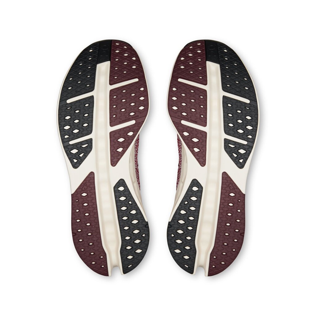 The Cloudsurfer Max road running shoe is meticulously designed for runners seeking maximum cushioning and unparalleled comfort over long distances. This shoe guarantees an exceptionally soft and fluid stride thanks to the advanced dual-layer CloudTec Phase® technology combined with innovative Helion™ foam. This synergistic technology effectively absorbs impact upon landing and ensures a smooth energy transition from heel to toe. The breathable mesh upper with a seamless construction optimizes air circulation, keeping the foot dry and comfortable even during intense performance. The newly improved flat knitted collar and innovative lacing system ensure a firm and secure foot lockdown, contributing to all-day comfort. Furthermore, the Cloudsurfer Max's design, with its elegant silhouette and contrasting color details, captures attention on every road. The rubberized outsole with special zones provides excellent grip and confidence on hard surfaces, minimizing the risk of slipping. The Cloudsurfer Max is thus an ideal choice for runners desiring stylish, soft, and reliably comfortable footwear for road running.