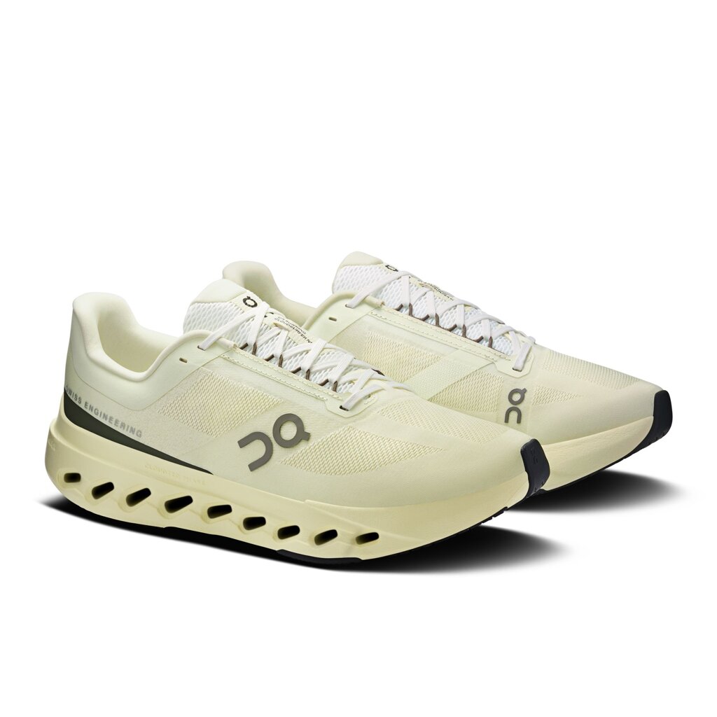 The Cloudsurfer Max road running shoe is meticulously designed for runners seeking maximum cushioning and unparalleled comfort over long distances. This shoe guarantees an exceptionally soft and fluid stride thanks to the advanced dual-layer CloudTec Phase® technology combined with innovative Helion™ foam. This synergistic technology effectively absorbs impact upon landing and ensures a smooth energy transition from heel to toe. The breathable mesh upper with a seamless construction optimizes air circulation, keeping the foot dry and comfortable even during intense performance. The newly improved flat knitted collar and innovative lacing system ensure a firm and secure foot lockdown, contributing to all-day comfort. Furthermore, the Cloudsurfer Max's design, with its elegant silhouette and contrasting color details, captures attention on every road. The rubberized outsole with special zones provides excellent grip and confidence on hard surfaces, minimizing the risk of slipping. The Cloudsurfer Max is thus an ideal choice for runners desiring stylish, soft, and reliably comfortable footwear for road running.