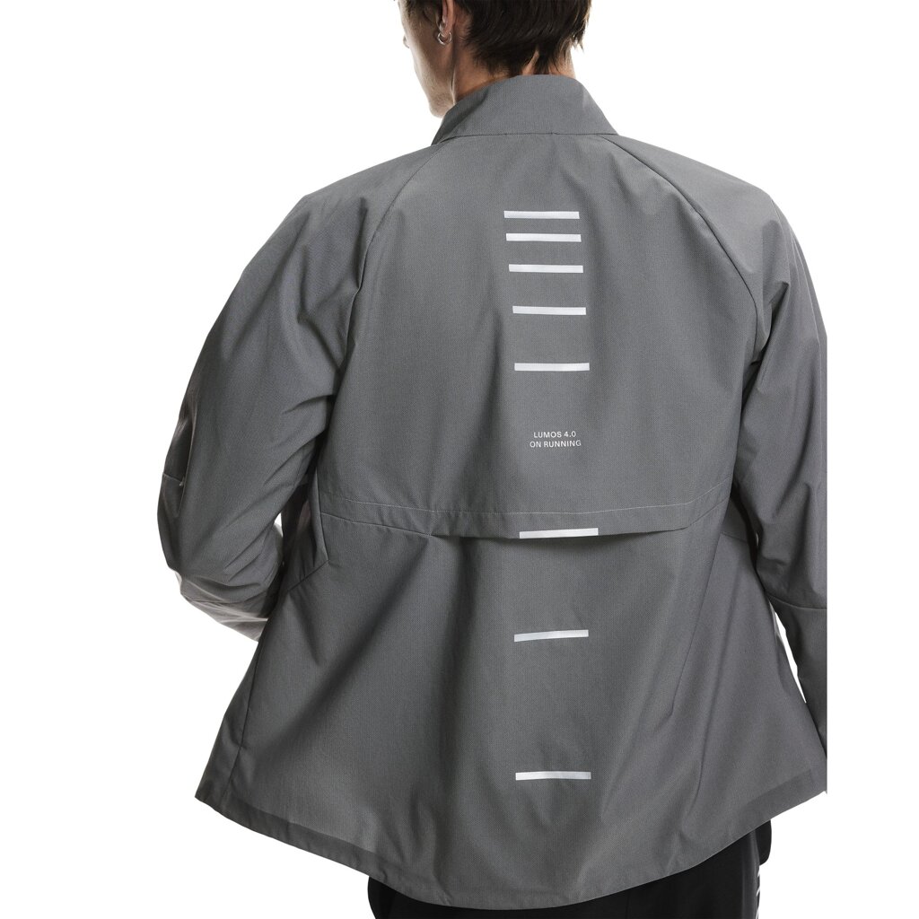 Reflective fabric and details on the back for performance that shines. Engineered with a water-repellent fabric, so you can run through changing weather. A zip pocket keeps your phone, keys and other valuables secure. Elastic cords on the bottom hem ensure a close fit, for no-budge protection.