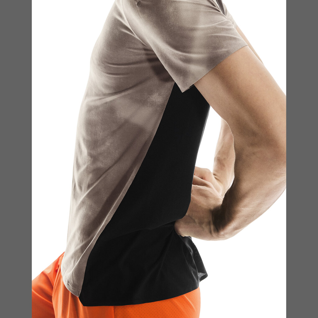 A running shirt full of features and great features! On Performance-T - an extremely lightweight running shirt, with reflective details and quick-drying material. The ultra-light and breathable short-sleeved shirt is designed to move with you. Thanks to the elegant advanced side seam, the Performance-T model is perfect in the heat, no one needs a shirt that is constantly rolling up while running. DryTec™ technology ensures a quick-drying effect and UV protection in the front part and high breathability in the back part, which is equipped with mesh. It is made of innovative Japanese fabric with quick-drying and moisture wicking technology. The great advantage of the running shirt is the taped seams and glued hems, thanks to which there is no unpleasant skin chafing during sports activities. With eye-catching graphics inspired by the warm hues and fractal shapes of the desert landscape, this is the functional running shirt you'll always reach for. Whatever your style, this lightweight and breathable performance shirt is here to take you further and faster.