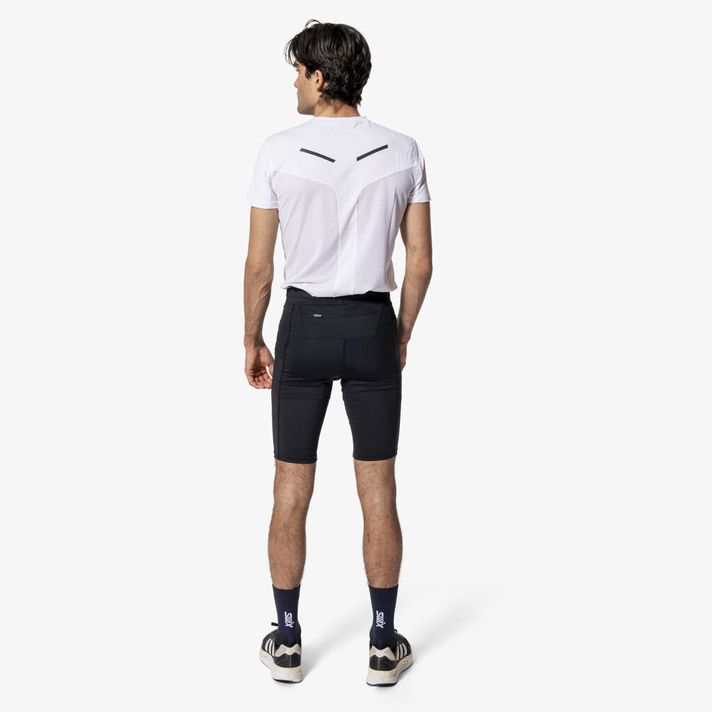 Maximize your performance with our running shorts tights, featuring an elastic waistband with an internal drawcord for a secure fit. A side thigh pocket and zippered back pocket provide convenient storage, while flatlock seams ensure a smooth, chafe-free experience. Reflective details enhance visibility in low-light conditions, making these tights the perfect choice for your next run.