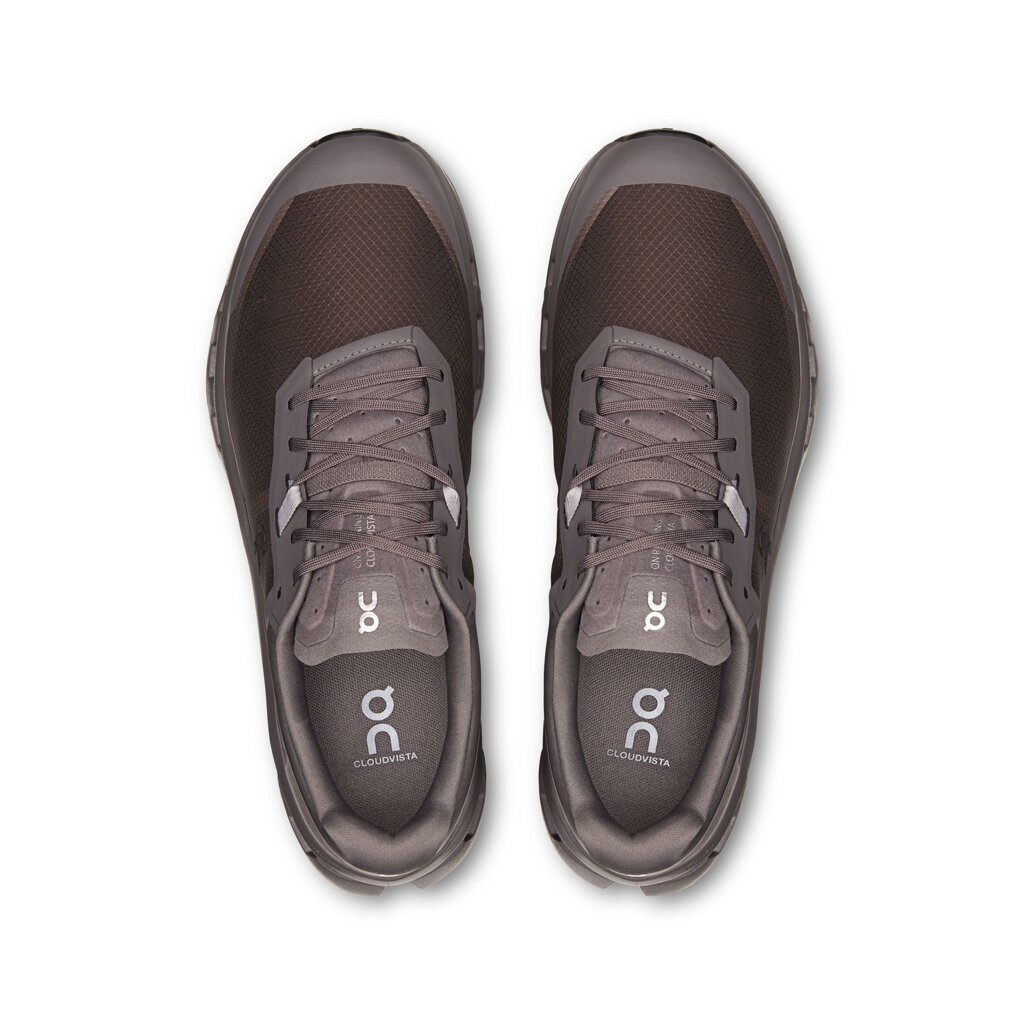 The Cloudvista 2 is an ideal off-road shoe for diverse outdoor adventures, whether demanding trail runs or relaxing walks on picturesque trails. This exceptionally breathable trail shoe now features a revised upper fit that precisely matches the desired size and enhances wearing comfort. The footwear is equipped with a Missiongrip™ rubber outsole with an updated and more aggressive lug profile, ensuring excellent off-road grip and traction and eliminating the risk of slipping. The integrated minimalist flexible Speedboard® plate with two grooves effectively increases propulsion and overall shoe responsiveness, encouraging more dynamic and enjoyable training. A more pronounced rocker construction supports a smoother stride and softer heel-to-toe transition, while a higher stack height adds more comfort and better underfoot feel. This model is designed with environmental considerations in mind, demonstrated by using 50 cm less thermoplastic polyurethane (TPU) compared to the previous model. The upper is also made from at least 90% recycled polyester, further reducing the product's ecological footprint. This footwear is an excellent choice for short to medium-distance trail runs and mixed terrain, where the combination of lightness, breathability, and reliable grip is key.