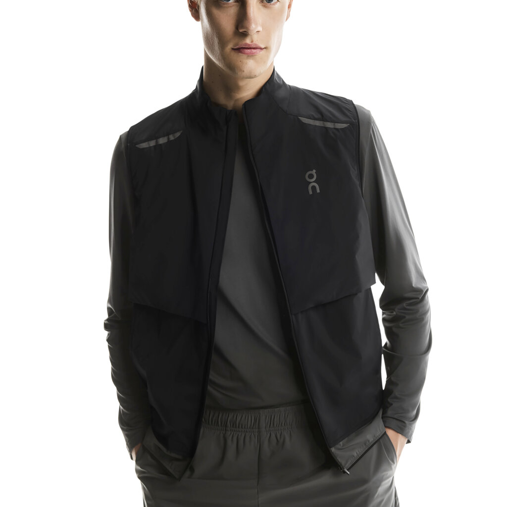 Lightly padded with On ThermaTec™ insulation – for staying warm without slowing down. The chest pocket with a double-sided zipper can store the full vest when things heat up. Reflective details on the front and back for standout performance. A brushed fabric inside the collar reduces friction and increases comfort.