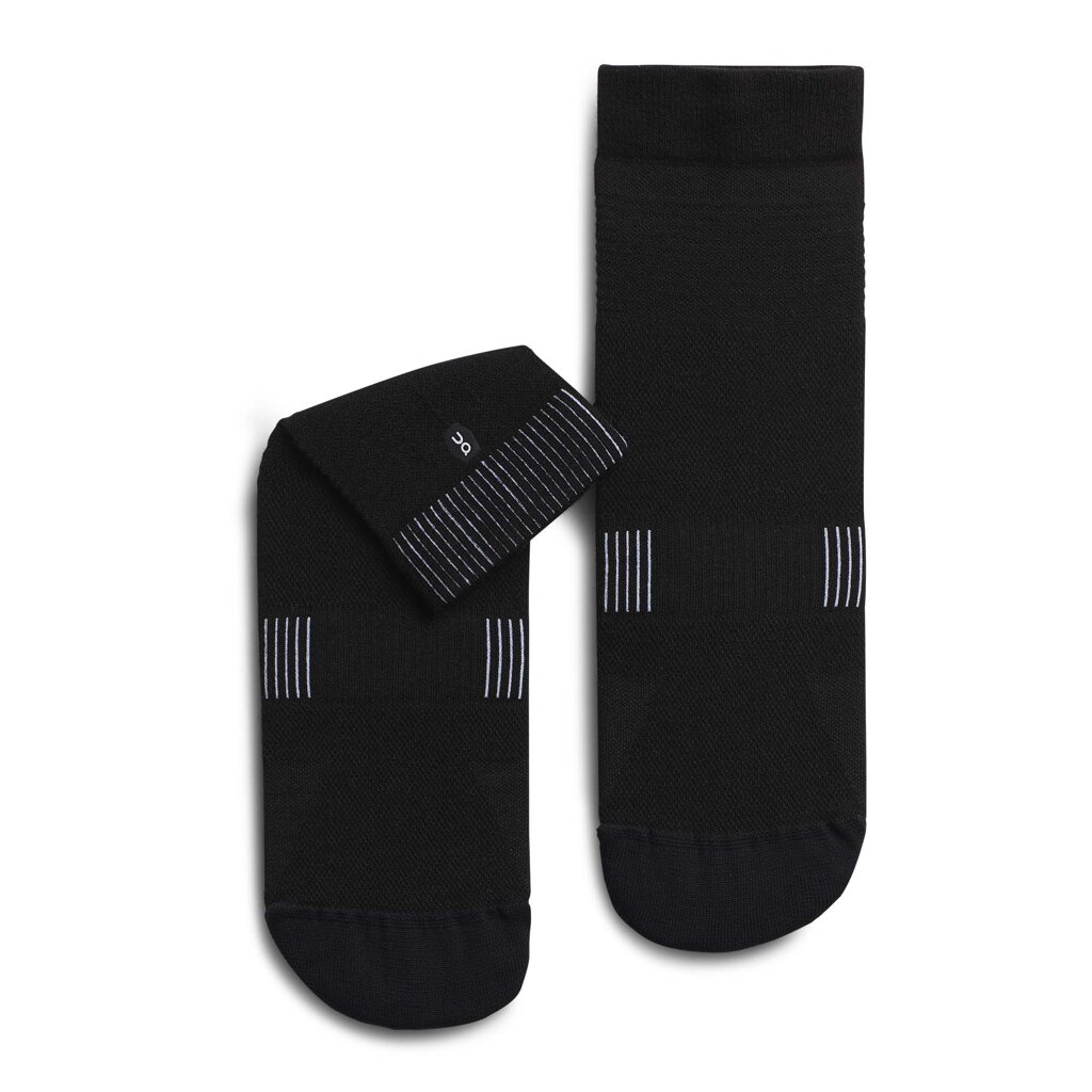 Ultralight sports socks designed with extra protection around the ankle to keep dirt and dust at bay. These are the On Ultralight Mid Sock, running socks that are lightweight and will reliably protect your entire foot, especially in the toe and heel areas, where there is strong padding and smoothly transitions to anti-blister knits. These running socks have a fine mesh that reliably removes excess heat from the places where it is needed most. On race day, small details can make a big difference. Get off to a good start.