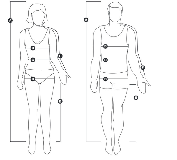 | F - délka rukávu (cm) | 83 | 85 | 87 | 89 | 91 | 93 |