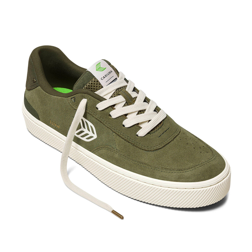 Pánské volnočasové boty Cariuma LUAN PRO Olive Green Suede Ivory Logo Burnt Olive Sneaker