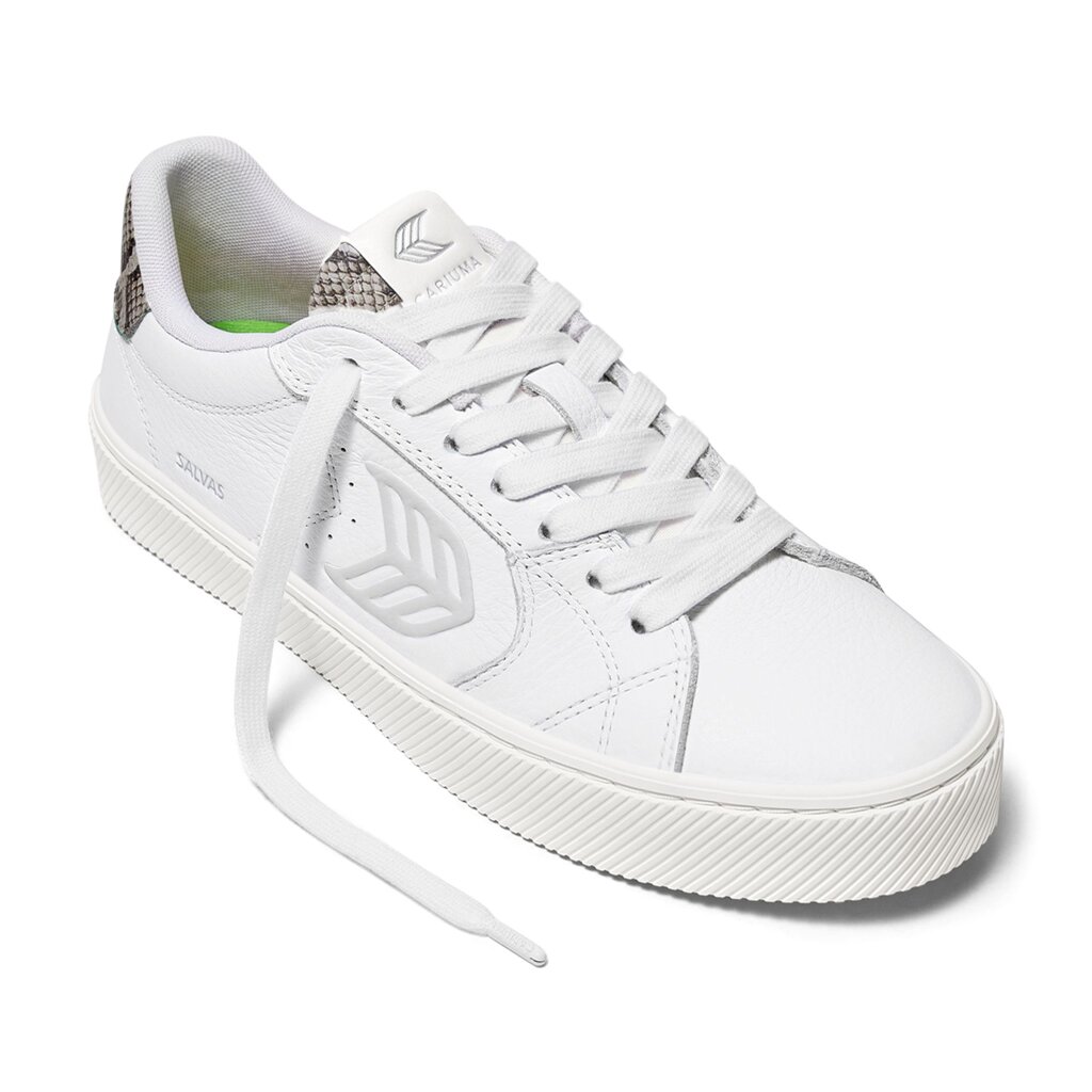 Pánské volnočasové boty Cariuma SALVAS White Leather Silver Cloud Logo Snake Skin Print Sneaker