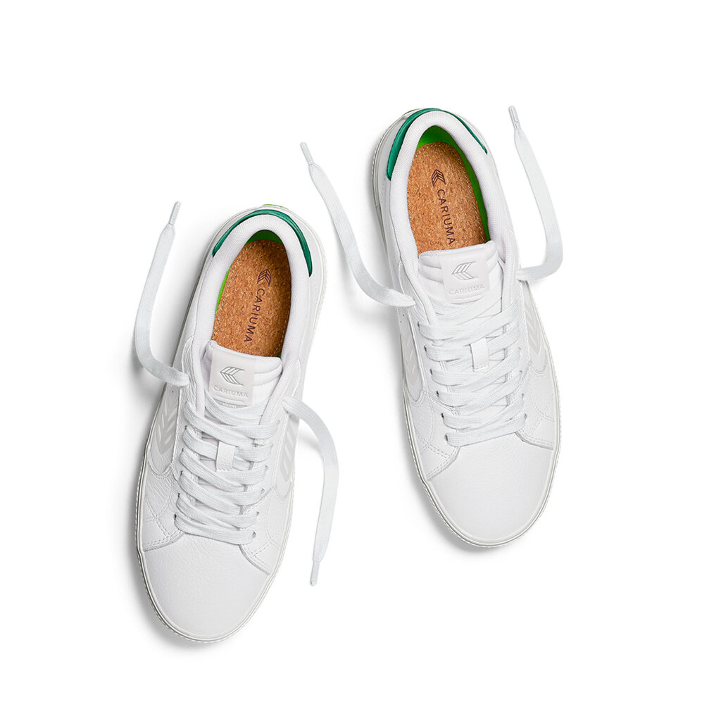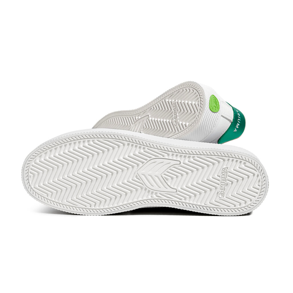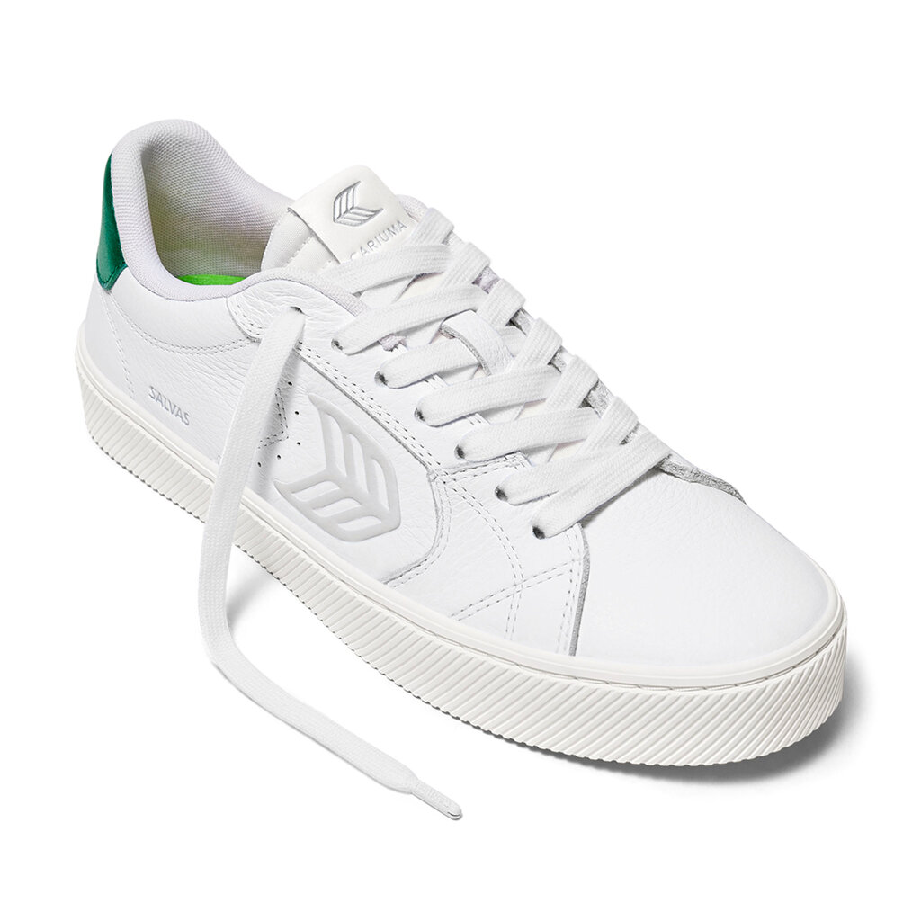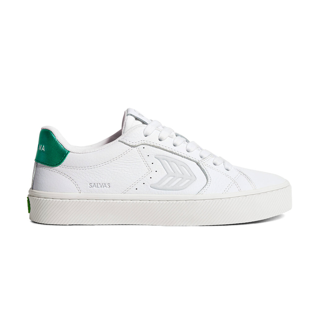 Pánské volnočasové boty Cariuma SALVAS White Premium Leather Ice Logo Metallic Green Sneaker