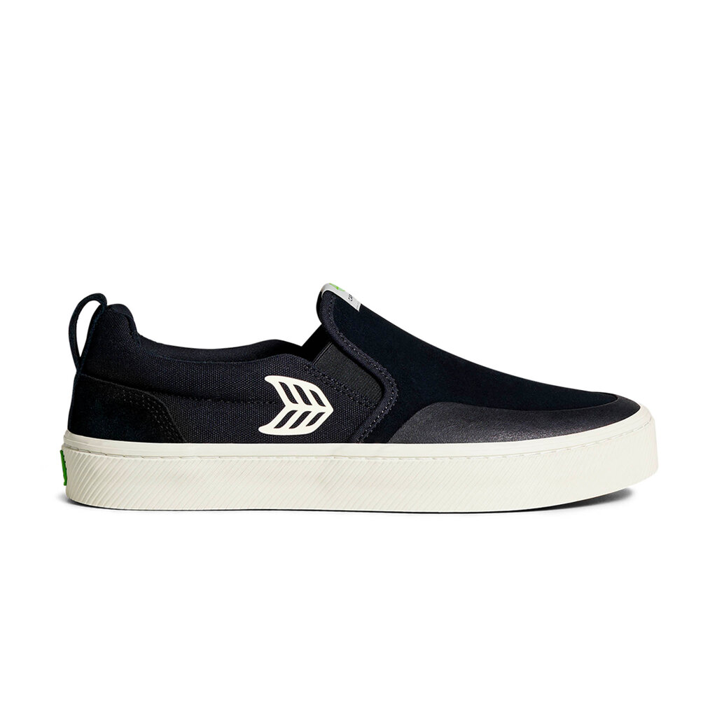 Pánské volnočasové boty Cariuma SLIP-ON PRO Black Suede and Canvas Ivory Logo Sneaker