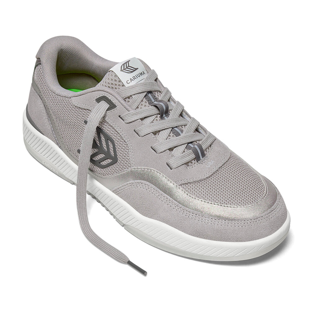Pánské volnočasové boty Cariuma UBA Light Grey Suede and Mesh Charcoal Grey Logo Silver Accents Snea