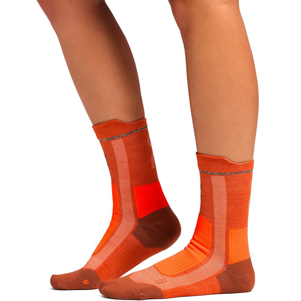 Ergonomic merino socks with ventilation channels, padding and anti-slip technology for comfortable running.
