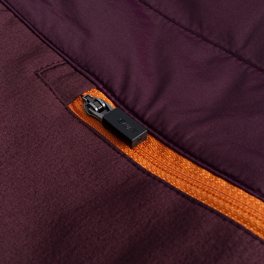 Horizon Jacket is a high-performance cross-country ski jacket, specifically developed for women. The jacket is tailored for a close and flexible fit that supports movement during training. Featuring Primaloft® insulation panels on the front and sleeves, it offers excellent wind resistance and warmth. The fabric is DWR-treated and highly breathable, with no membrane, making it ideal for high-intensity efforts. The brushed elastic panels under the arms enhance comfort and ventilation. Details include an elastic-bound hood, quilted panels, inner cuffs, reflective elements, and an adjustable hem.