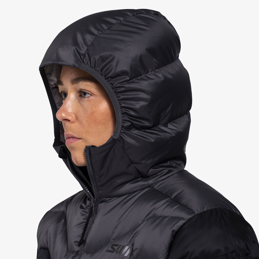 Swix Infinity Down Jacket is a technical down jacket made of durable ripstop material for long-lasting use. The jacket is filled with 80/20 duck down with 650 fill power, which provides excellent insulation without being heavy. Elastic hem on hood and cuffs ensures a snug fit, while adjustable hem lets you adjust warmth. The jacket has zippered pockets for safe storage and easy-to-handle zipper pulls. A light and warm down jacket that is suitable for everything from everyday life to demanding outdoor activities.