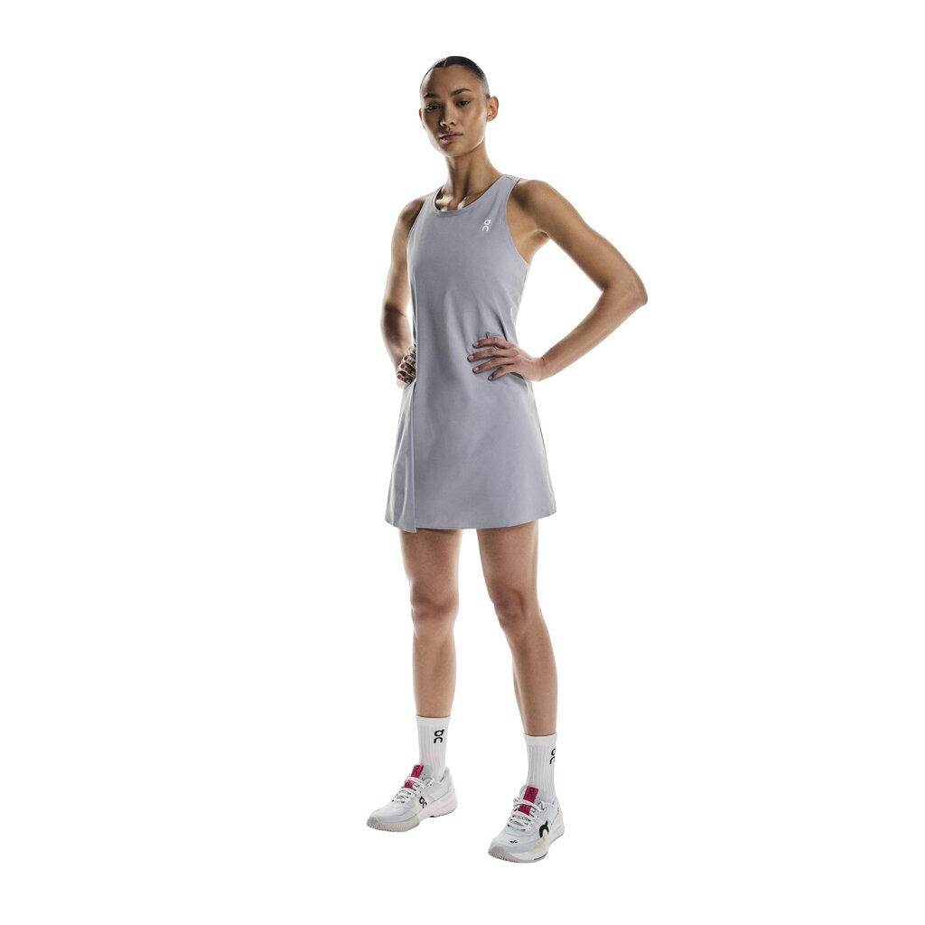 The Court Dress features separate inner shorts for enhanced coverage, allowing you to dive into the game with confidence. Designed for a great fit, it includes two functional side pockets for tennis balls, valuables, or your phone. This stylish dress offers a classic tennis aesthetic with a modern asymmetrical element. A pleated skirt and airy racerback design ensure effortless movement, so you can focus on your game and feel fresh. The Court Dress is crafted from lightweight recycled polyester, ensuring it won't weigh you down. Additionally, bonded hems provide chafe-free comfort while you dominate the court.