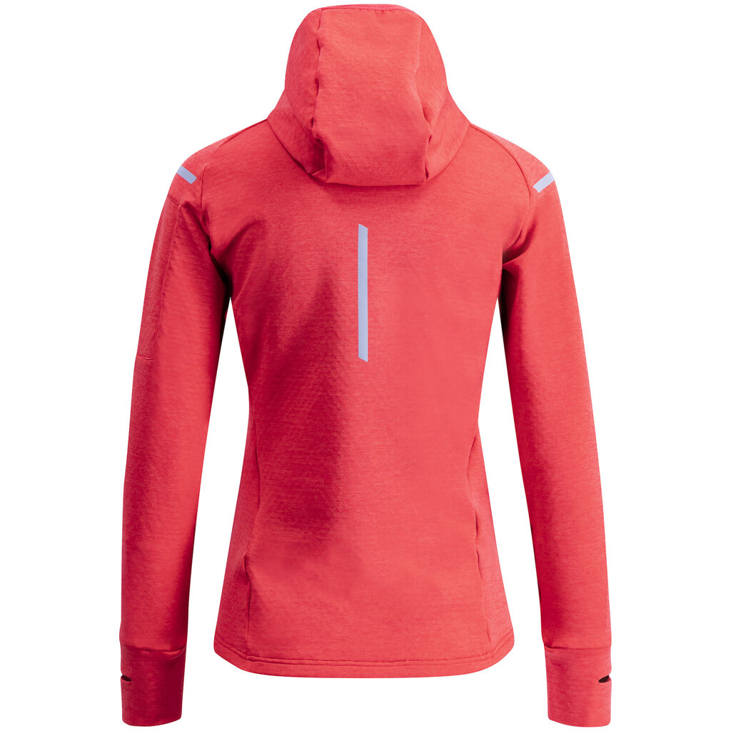 Discover the ultimate in comfort and performance with our hooded midlayer. Crafted from 4-way stretch fabric with a brushed backside, it offers exceptional softness and flexibility. The elastic-bound hood provides a snug, secure fit, while the zippered upper sleeve pocket keeps essentials close at hand. Watch-compatible cuffs allow easy access to your device, and reflective details ensure visibility in low-light conditions. Perfect for layering, this midlayer is designed for both style and functionality on all your active adventures.