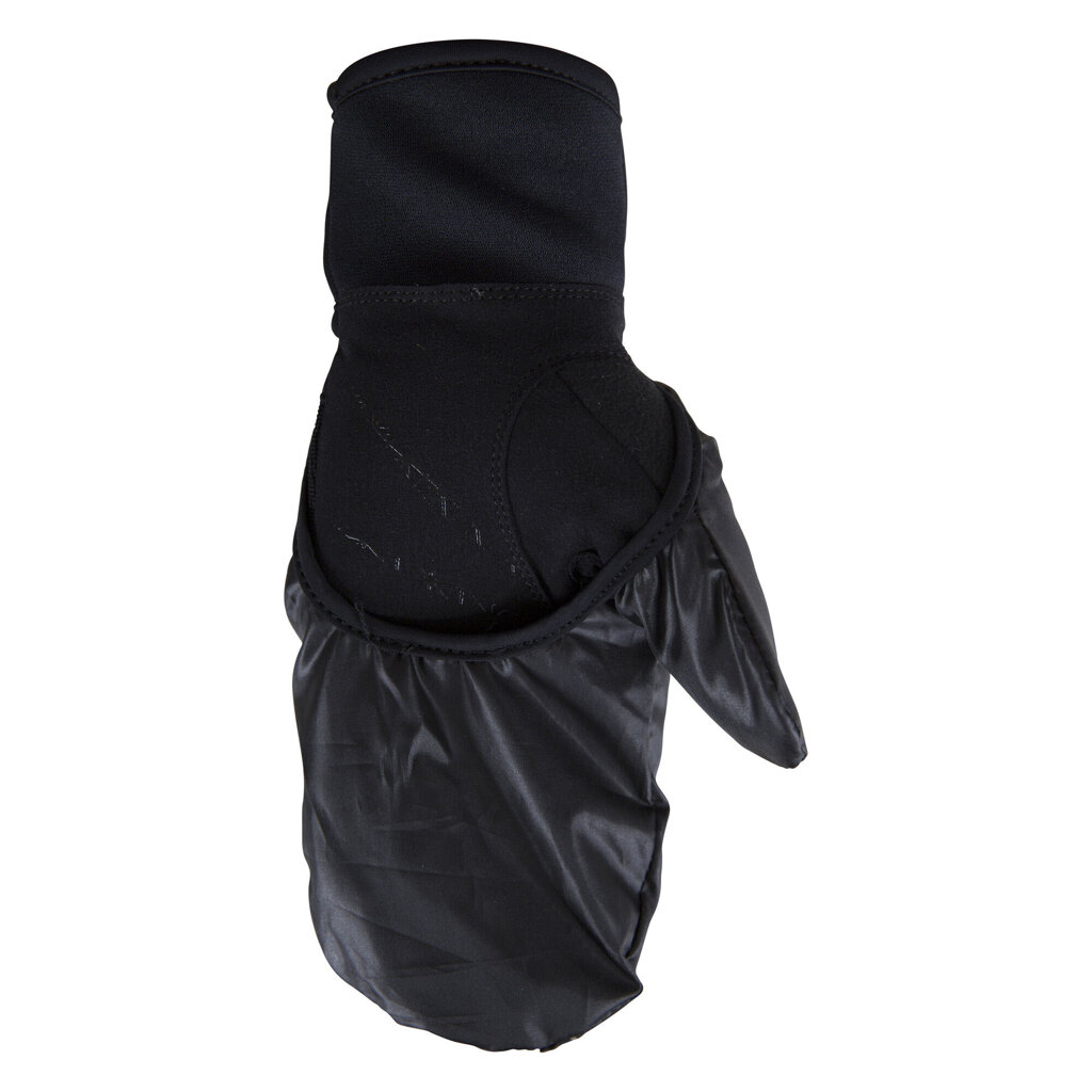 The AtlasX Glove-Mitt is a technical cross-country skiing glove featuring a windproof cover. When extra protection is needed, the windproof cover in the cuff can be easily deployed. This 2-in-1 solution, combined with effective insulation, makes it ideal for cold and wet days. The palm and areas between the fingers are made of synthetic leather, with reinforcement on the thumb and index finger for durability. Silicone is strategically placed on the palm and fingertips to ensure excellent grip.