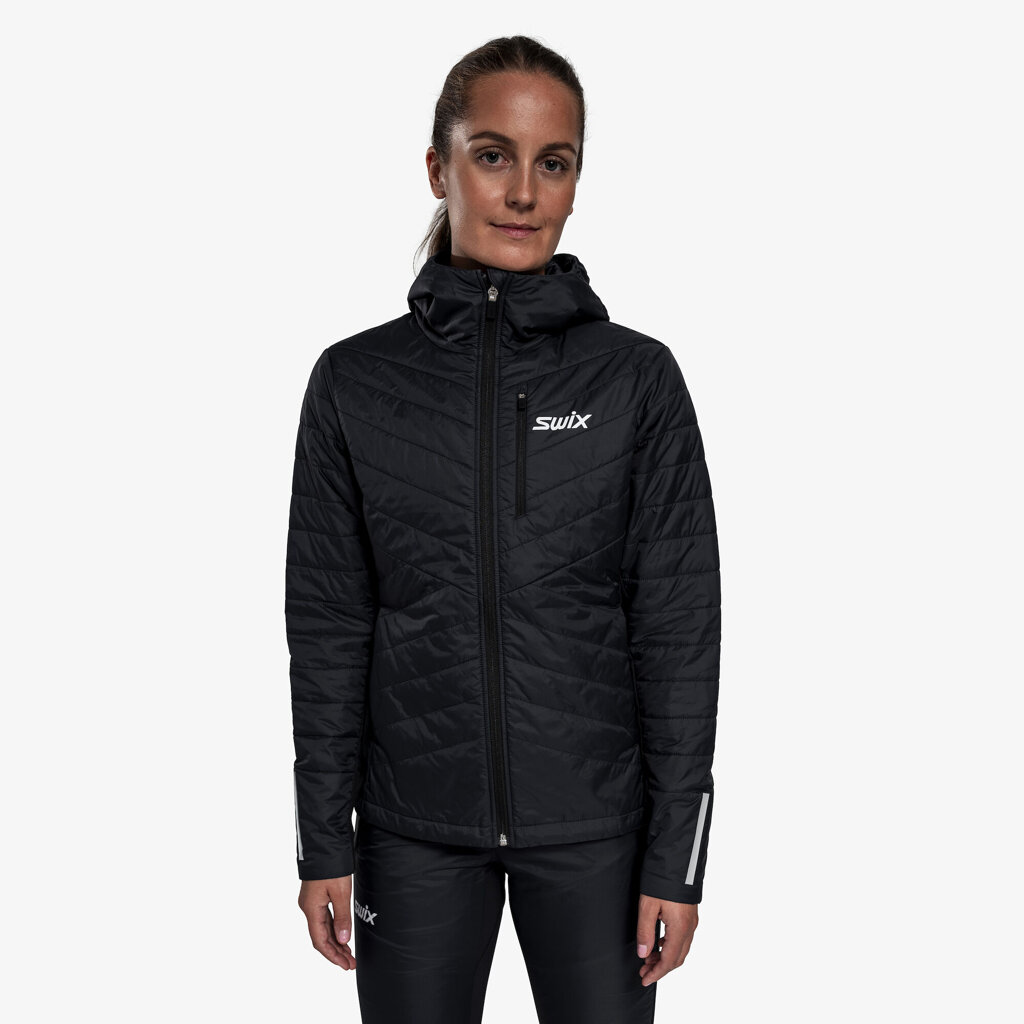 Nordic Insulate Jacket is a quilted jacket with a hood, made for warmth, comfort and functionality. The jacket combines insulating padding with softshell panels that provide a good fit and freedom of movement.