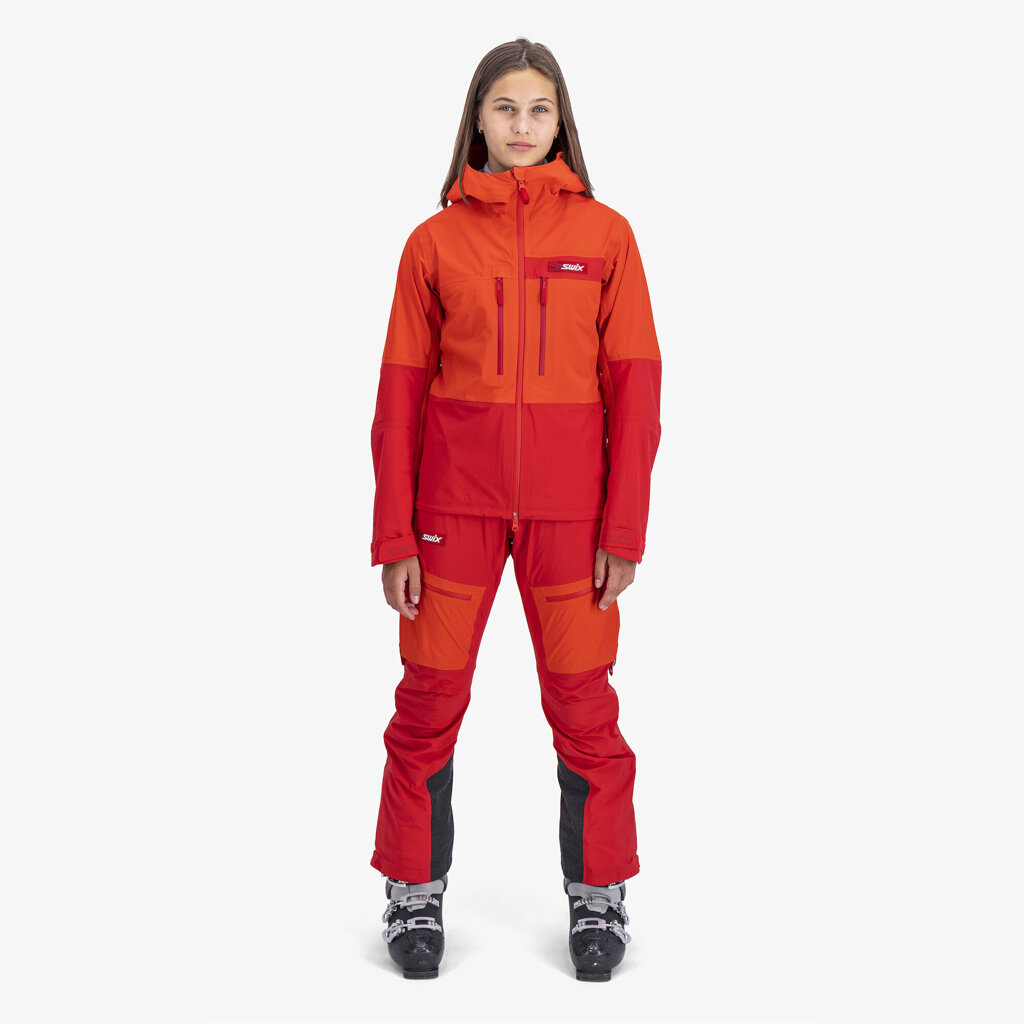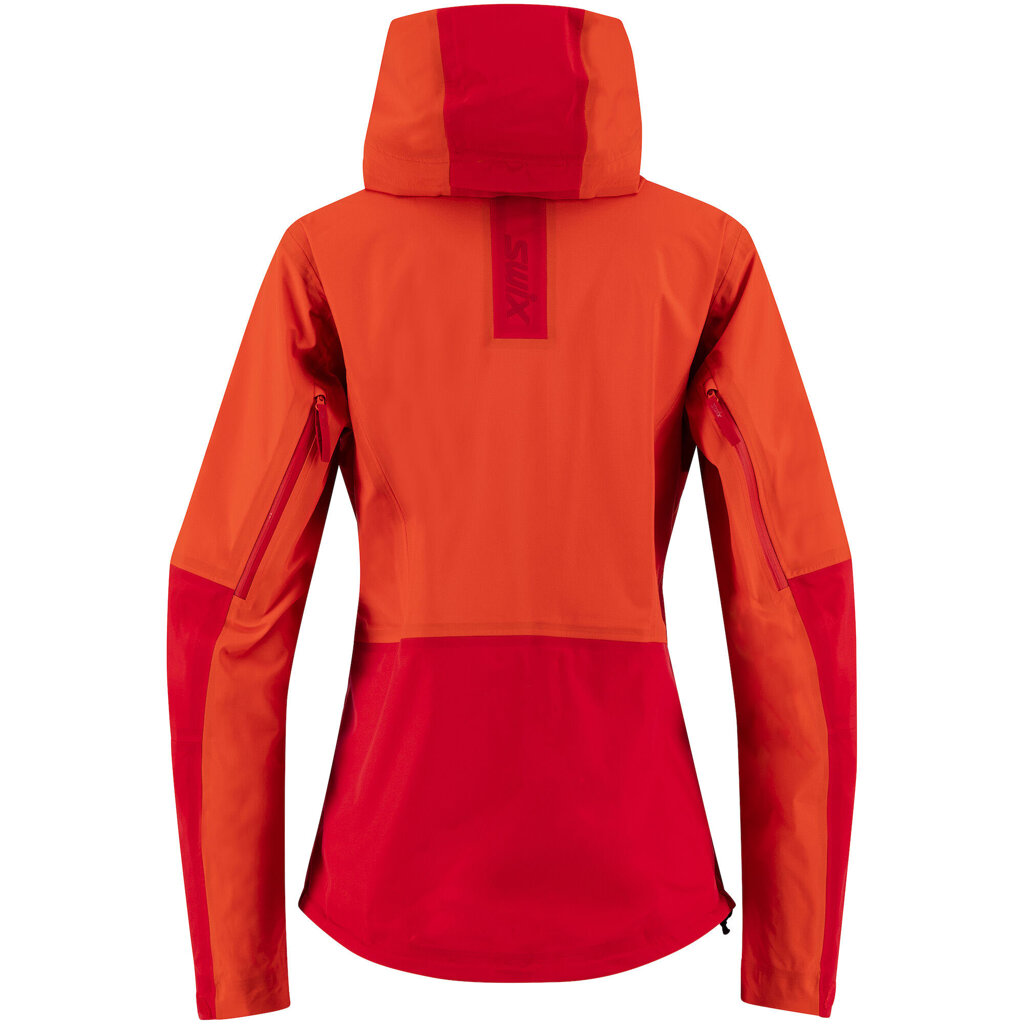 Surmount Shell Jacket is a year-round waterproof and windproof shell jacket with good stretch. Designed as an alpine jacket, it is also suitable for other winter activities. The jacket is fully taped and has a technical fit that provides good mobility. It features a functional design with easy access to chest pockets, ventilation under the arms, and a storm hood designed to accommodate an alpine helmet. The jacket has sleeve openings with Velcro adjustment and a bottom adjustment for tightening as needed.