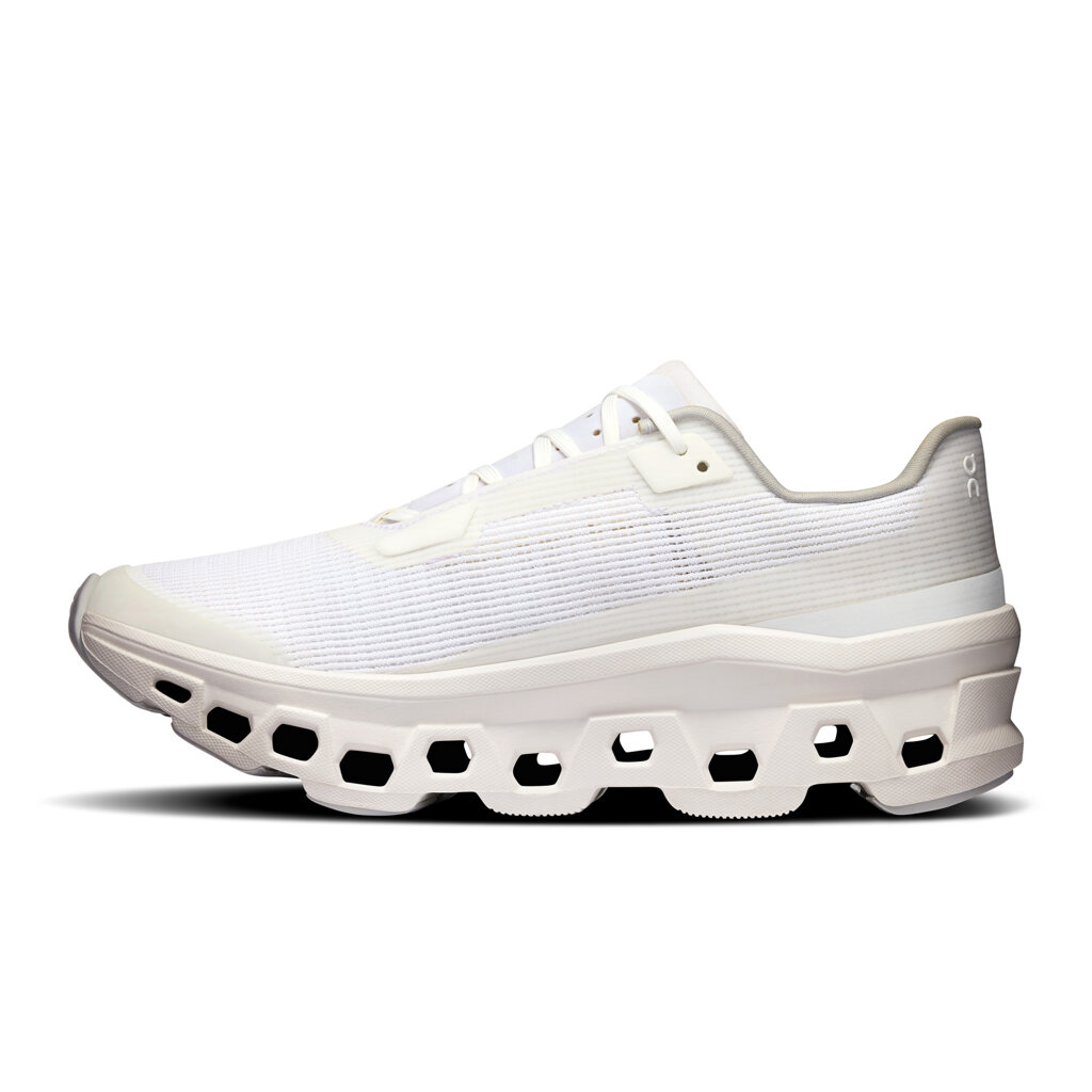 A cushioned road running shoe for the ultimate in maximalism. Now with more cushioning, more propulsion and more energy return. The On Cloudmonster Void running shoe delivers maximum comfort with synthetic suede overlays, a perforated microfiber tongue and a new engineered mesh upper for enhanced breathability. The road running shoe features Monster CloudTec® for massive cushioning and dual-density Helion™ technology for even greater bounce. A nylon Speedboard® provides dynamic bounce and a pronounced rocker supports the natural movement of the foot. Thanks to the innovative design, these shoes are ideal not only for long training sessions and recovery runs, but also for casual wear.