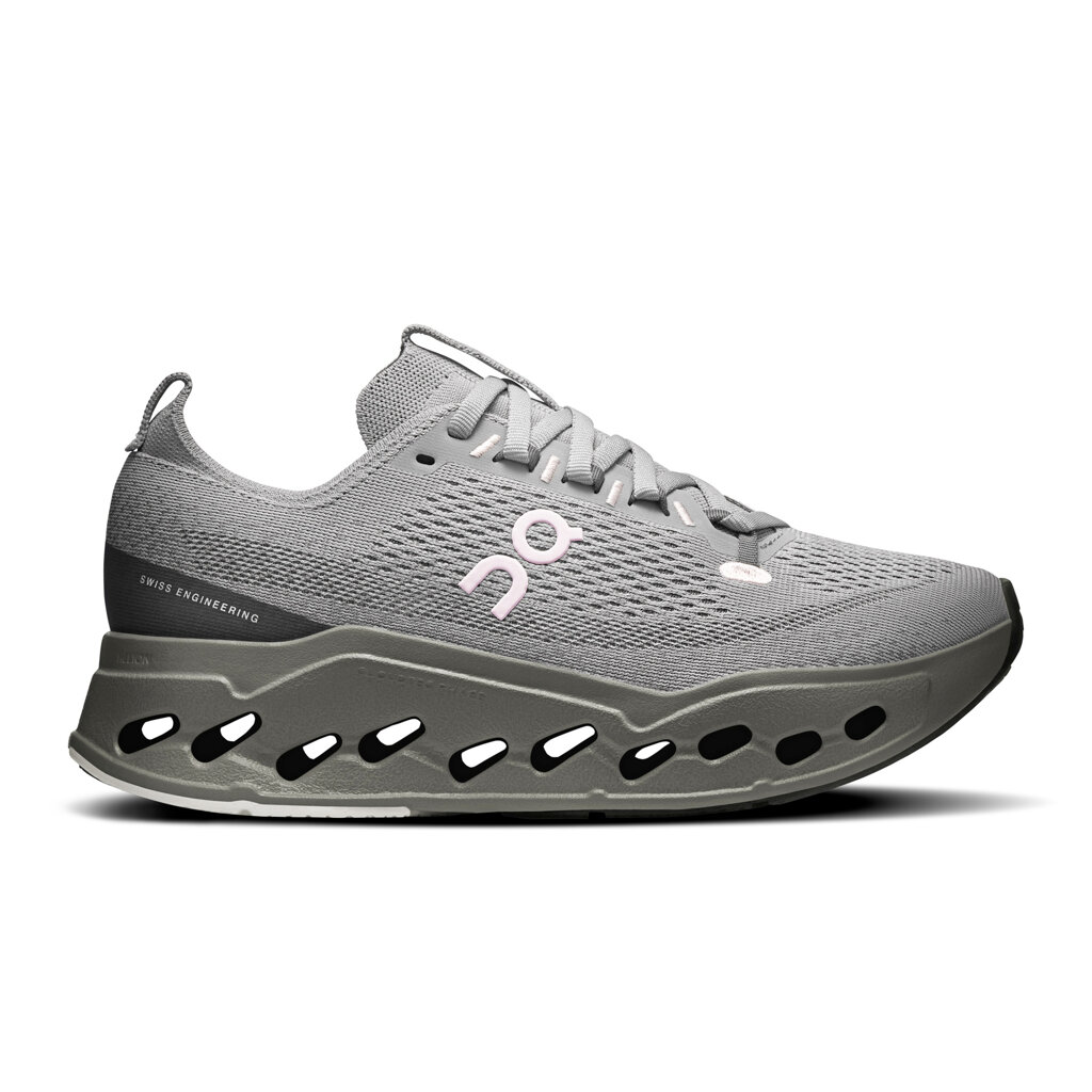 The Cloudsurfer Max is a road running shoe with maximum cushioning, designed for smooth, comfortable long-distance running. A double layer of CloudTec Phase® technology combined with Helion™ foam provides an exceptionally soft ride that absorbs shock and seamlessly transitions from heel to toe. A sleek silhouette with contrasting color details draws attention, while a breathable mesh upper, flat knit collar and innovative lacing system provide all-day comfort and a secure fit. The Cloudsurfer Max is the perfect choice for anyone looking for a soft, stylish and long-lasting comfortable road running shoe.