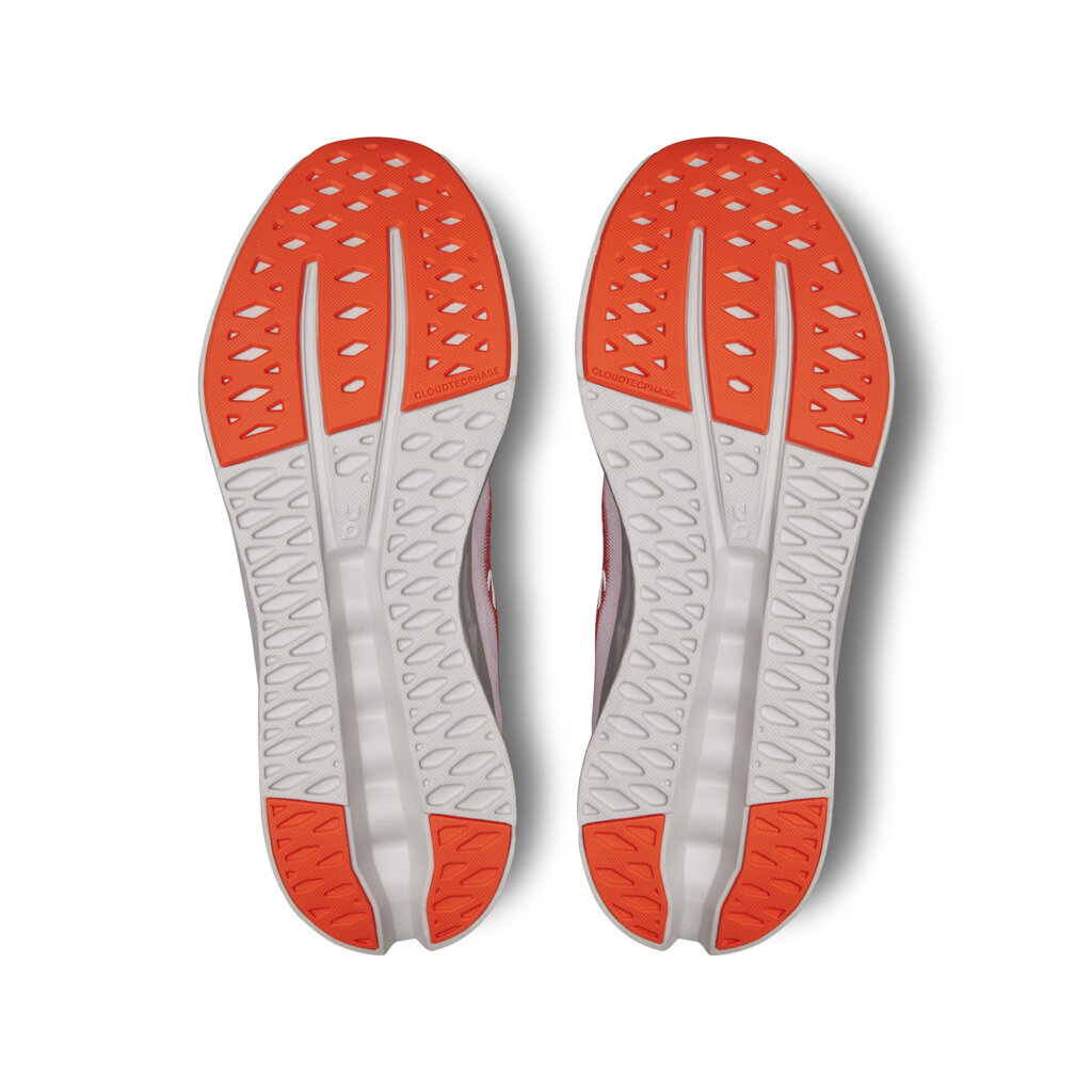 Ultra-soft, cushioned road running shoe that will propel you to new miles. Based on the insights gained from the FEA method, we created the optimal midsole for a smooth weight transfer from heel to toe. It's called CloudTec Phase® and it represents a new era of cushioning. In CloudTec Phase® technology, computer-optimized clouds smoothly collapse like dominoes when your foot hits the ground. The Cloudsurfer road running shoe places a strong emphasis on sustainability with a recycled material composition and a new, more environmentally friendly dope dyeing technology that requires 90% less water than standard techniques. A ride like you've never experienced before.