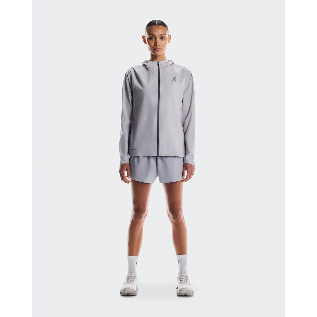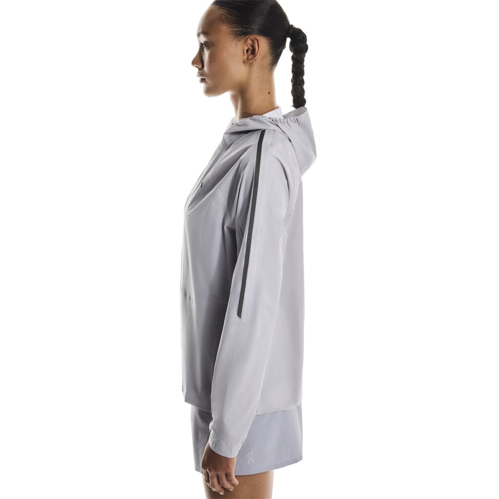 Tested and tested again, this jacket features details engineered for your run – like the shaped hood. With its elasticated band, it will stay in place with every stride – while the elasticated bottom hem ensures a close fit for no-budge protection. Featuring two side pockets with water-resistant zippers to keep your car keys and energy gels safe through stormy conditions. And for added protection, an inner pocket, inside one of the zip pockets, keeps small valuables from bouncing around. Cruise through changing weather in this waterproof must-have. Featuring On GuardTec™, a 3-layer technology, with a water column of at least 10,000mm, it ensures breathability and keeps you dry. Plus, it's got four-way stretch so you can run all-out.