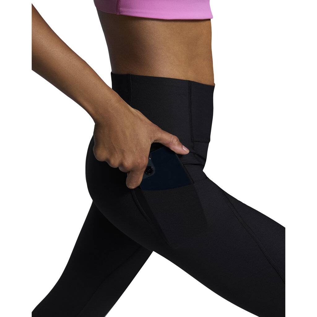Made for low-intensity training. A high waist, bonded waistband construction and bonded hems ensure that these Studio Tights stay in place. No pulling up. No distractions. The elastic, flexible fabric hugs your body and moves with you. Thoughtful stitching enhances shape and design. Plus, it features a buttery-smooth feel with no zips, hard points, or front seams – ensuring weightless comfort all day long. A pocket along the side seam on the thigh is big enough for your phone. Meanwhile, a hidden pocket constructed into the waistband keeps valuables like keys and cards safe.