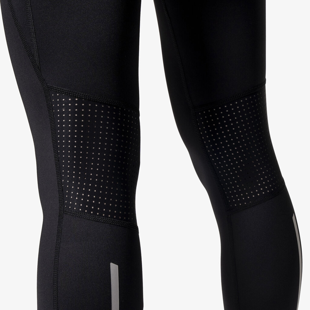 Full-Length Running Tights Push your limits with our full-length running tights, crafted for comfort and performance. Featuring a high-waist design with an elastic waistband and internal drawcord for a secure fit, these tights offer flatlock seams and a crotch gusset for smooth, chafe-free movement. A zippered back pocket and side thigh pocket provide ample storage, while perforated panels at the back of the knees enhance breathability. Reflective print details ensure visibility in low-light conditions, making these tights the ideal choice for any run. Key features: