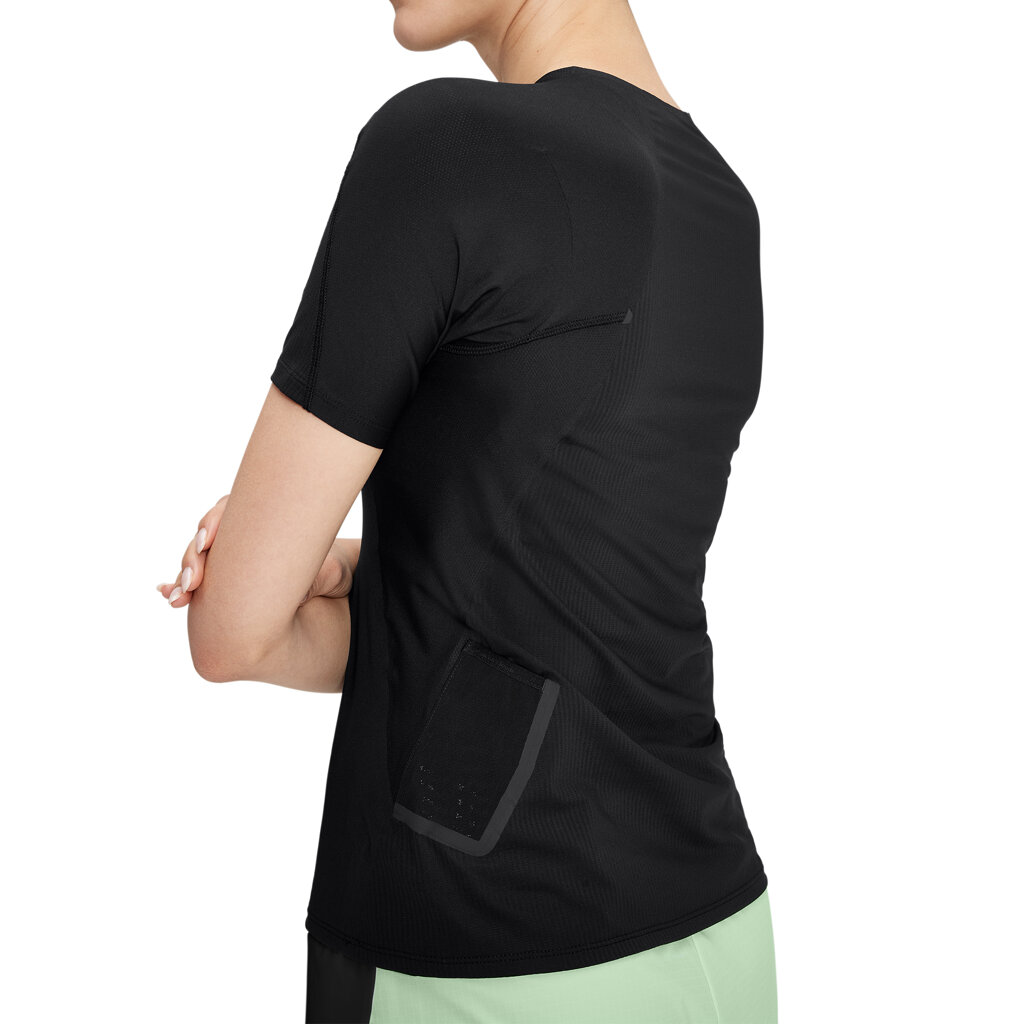 A seamless running top made for marathons and ultras. What makes the perfect ultra-running top? It's all about comfort. Super soft, every seam of the Ultra-T running top is smoothed and taped to prevent pressure points, chafing and unwanted friction during your workout. With high-performance materials and a modern cut, this trail running top hugs your body and adapts to you. Mesh on the back of the top provides unmatched breathability, and premium reflective details glow in the dark so you can easily stand out from the crowd. Long runs can take their toll. We've built a pocket into the back of this running shirt that's big enough to hold mid-run snacks and other small essentials to keep you energized on even the toughest runs.