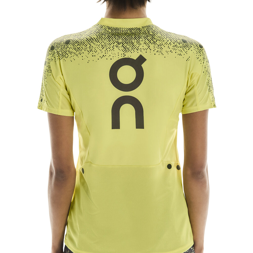 Taped seams are smartly placed to provide support where it’s needed most. The bottom section of the T-shirt and under the arms are made from a breathable mesh. Made from soft, high-performance fabric that skims your body for a comfortable fit. Stand out with our elite trail athlete print, reflective dots and big On logo on the back.