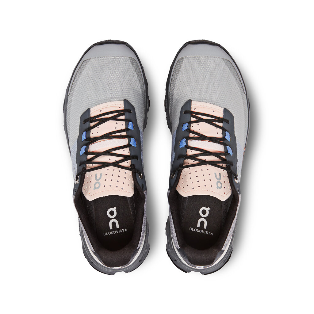 A lightweight, versatile trail running shoe for comfortable forest trails. The ultra-lightweight and versatile Cloudvista trail running shoe combines Helion™ super foam and CloudTec® technology for unrivaled comfort. While the ever-reliable Missiongrip™ system means it's the ideal shoe for any short to medium-distance trail runner. One of the lightest shoes in our trail collection, the Cloudvista trail shoe's upper gives you flexibility focused on comfort that's easy to wear. With over 70% recycled polyester, a perforated tongue and a TPU-coated toe, it's a trail running shoe with a style that works well off the trail. A trail running shoe that you can take anywhere on gentle terrain - winding forest paths, park paths or lakeside trails. A great choice for a quick run or even a brisk, easy hike. A very comfortable model for all your outdoor adventures.