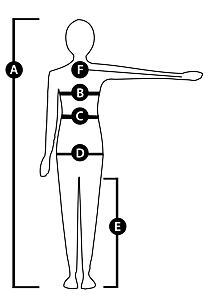| F - délka rukávů* (cm) | 75 | 76 | 77 | 79 | 80 |