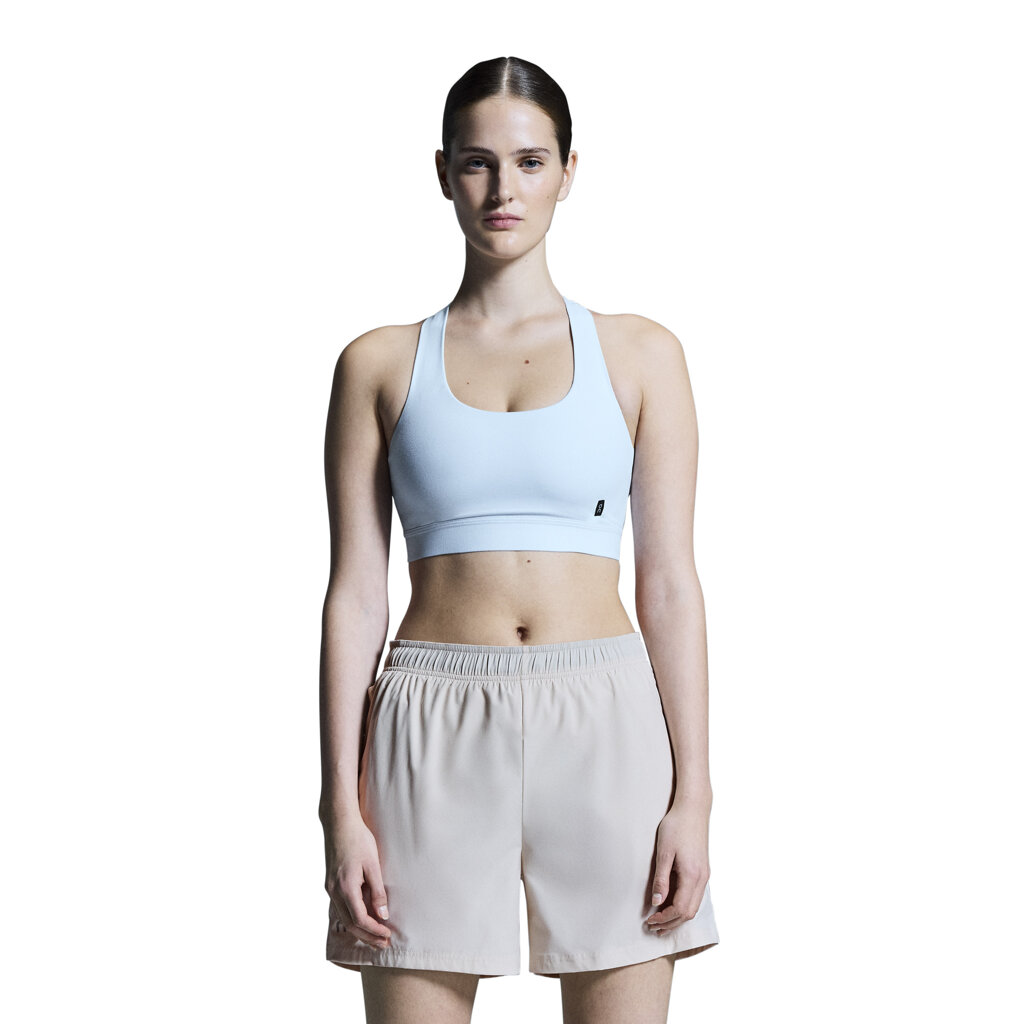 A bra designed not only as a fashion accessory, but primarily designed for sports, whether it's running, yoga or weight training. The sports bra provides medium support. The fixed front straps help minimize vertical movement, while the interlining inside the bra increases comfort and support. The Power Mesh adds more stability and increases breathability. The bra's lightweight padding made of soft spacer fabric breathes well while providing slight support. The sweat-wicking fabric helps to wick moisture away from the skin as quickly as possible. The Core Bra is designed to look good and feel even better. A unique sports bra without fasteners, underwires or irritating seams.