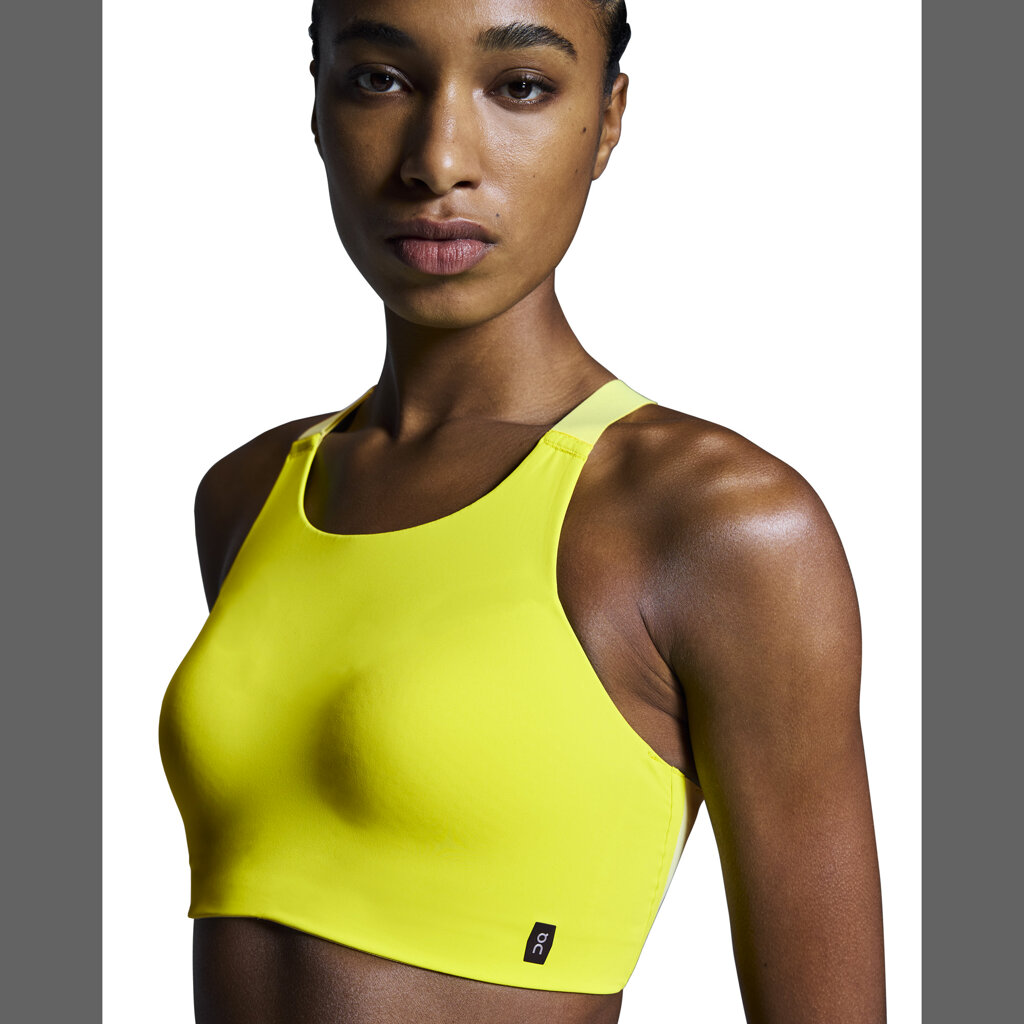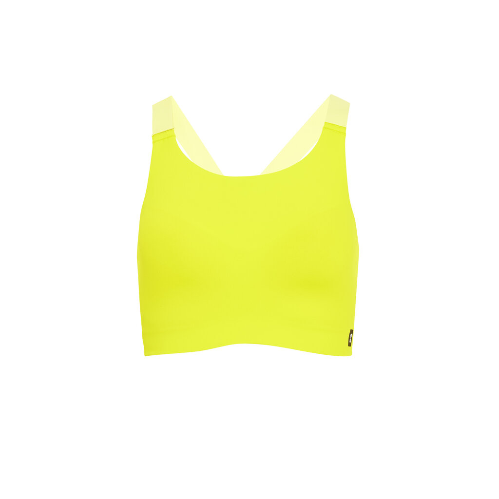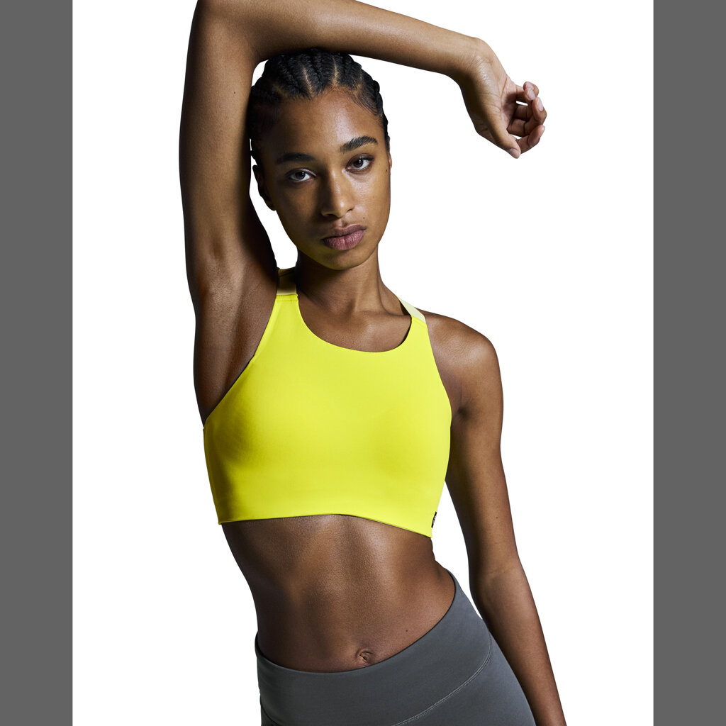 A high-support bra that minimizes distractions and ensures full concentration during exercise thanks to molded cups, firm straps and glued details.