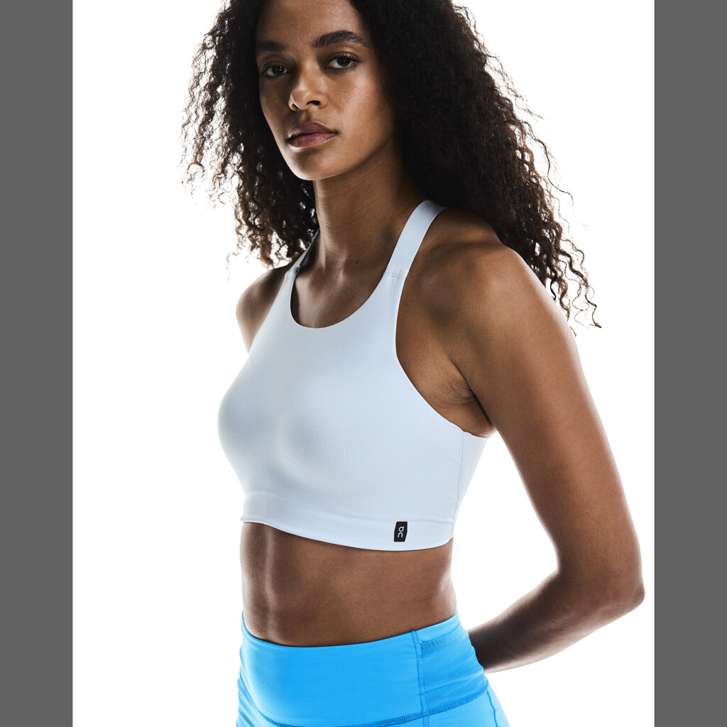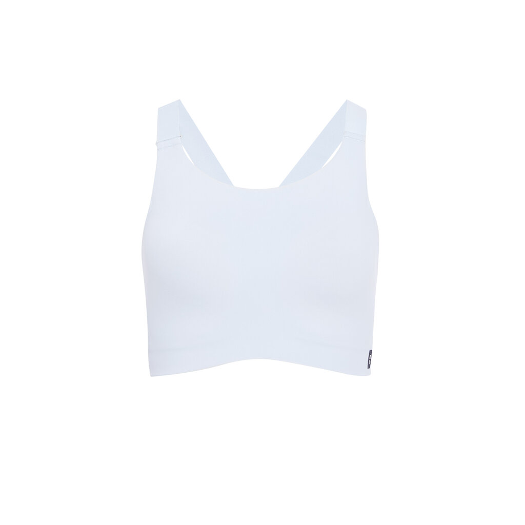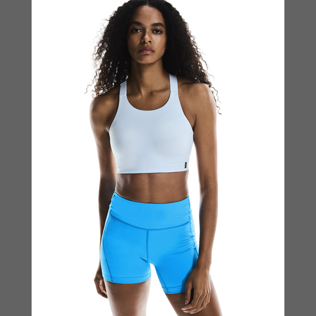 A high-support bra that minimizes distractions and ensures full concentration during exercise thanks to molded cups, firm straps and glued details.