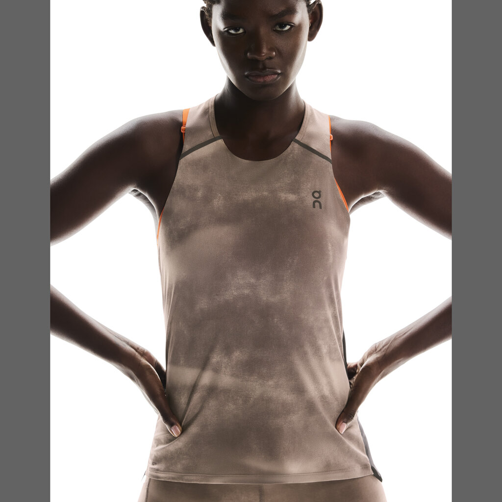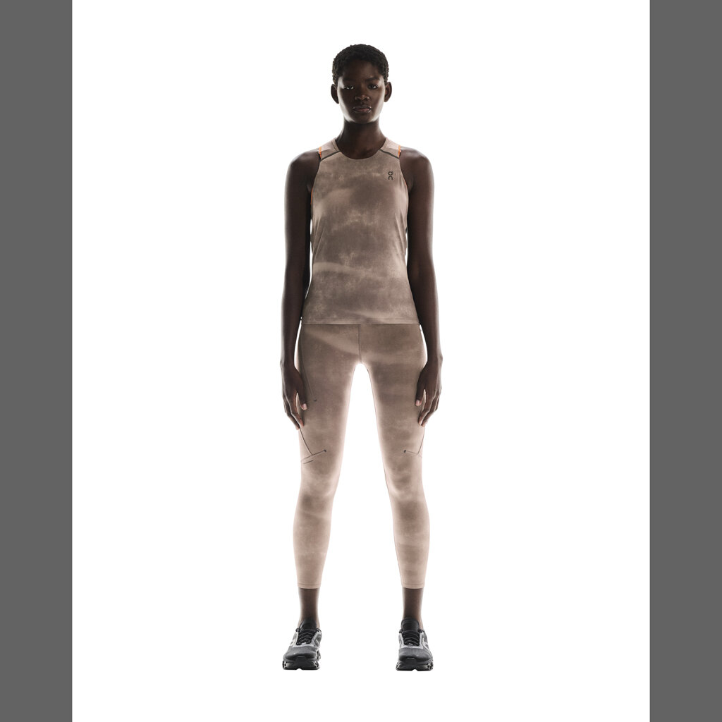 A running tank designed for your speed. A running tank made of ultra-light, quick-drying and breathable materials that protect you from the sun's rays thanks to UV protection. Every detail of the On Performance Tank was created by Aop to be airy, light, not restricting your movement and supporting you in great performances even on the hottest days. The lightweight fabric with On DryTec™ technology wicks sweat away from the skin and the highly breathable mesh means that you will feel maximum airflow as the pace increases. The intelligent seams of the Performance Tank Aop running tank and the overall cut are designed to cooperate with the movement of your body. If the Performance Tank has seams, they are taped, for the most part the tank is seamless. No pressure points. No distractions. With eye-catching graphics inspired by warm hues and fractal shapes of the desert landscape, this is a functional running tank that you will always reach for.
