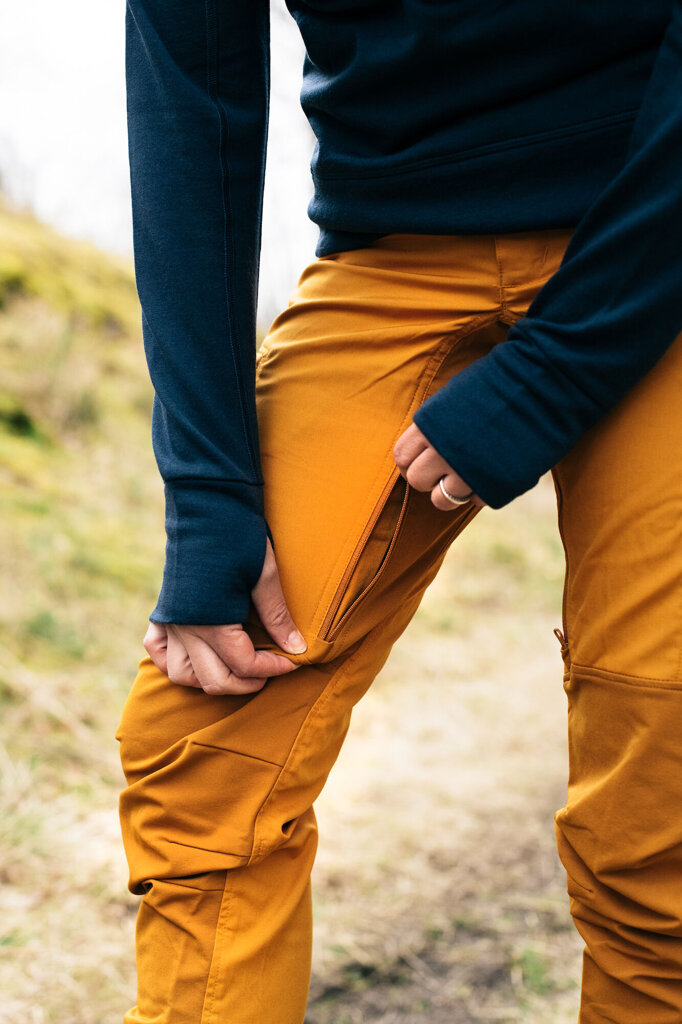 The main fabric of the Makke Pant is called Lundhags Polyester Cotton mix, which is a mixture of organic cotton and recycled polyester with mechanical stretch. Schoeller Dryskin softshell stretch panels protect against tearing from branches and abrasion from stones, while providing maximum freedom of movement and quickly wicking moisture away from the body. Schoeller Keprotec reinforcements on the instep ensure optimal durability. Ventilation zippers on the inside of the instep, in the hand pockets and lower along the outside of the legs increase airflow during demanding activities. Makke trousers are available in Short, Regular and Long sizes.
